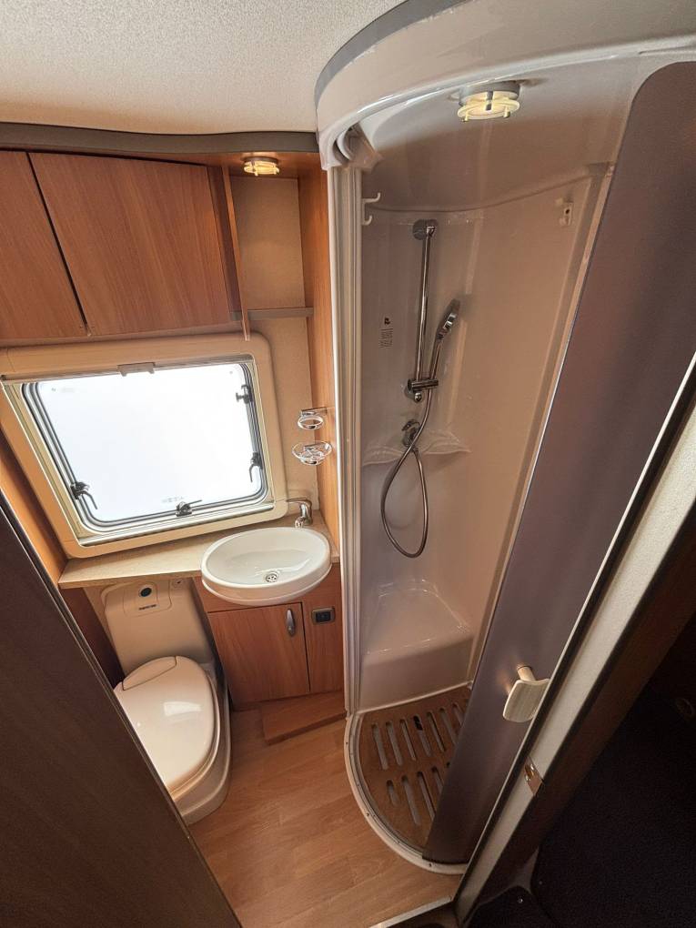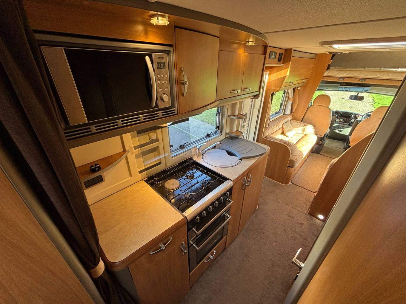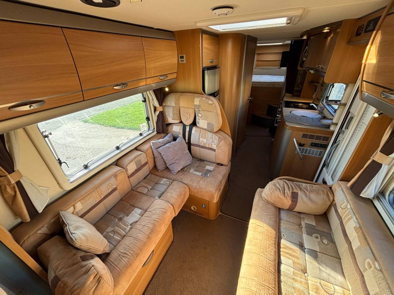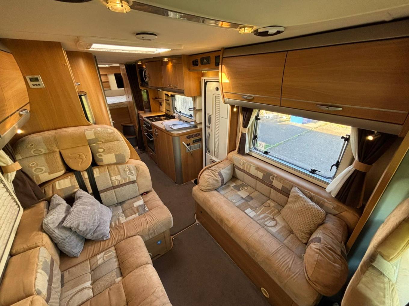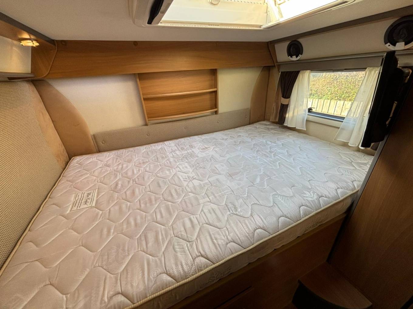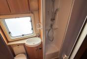 Layout - The end bedroom boasts a Large Transverse Double bed sitting above a garage and plenty of storage and wardrobe space surrounding it. The desired separate Shower Cubicle can be found in the washroom in front of the rear bed and is complete with Toilette Cassette, Vanity Mirror, Medicine Cabinet and Wash Basin with hot and cold water. The kitchen which is located next to the habitation door allows extra ventilation when cooking a meal and comes with 3 Gas Hobs, 1 Electric Plate, Microwave, Hot and Cold Mixer Tap, Oven and Separate Grill and a Large Modern Fridge with great freezer space to ensure you have everything you need in this home away from home.