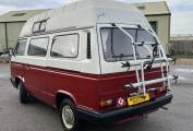 Call with any questions on 01423 609985. Gladys, is a 1990, Hi-top, 2 berth, Volkswagen Transporter T3, professional conversion by renown Holdsworth. For 34 years of age, overall she is in good condition inside and out, with a few blemishes here and there and has MOT to May with no advisories, new petrol engine and service in 2025. The Hi-top means you can stand up inside