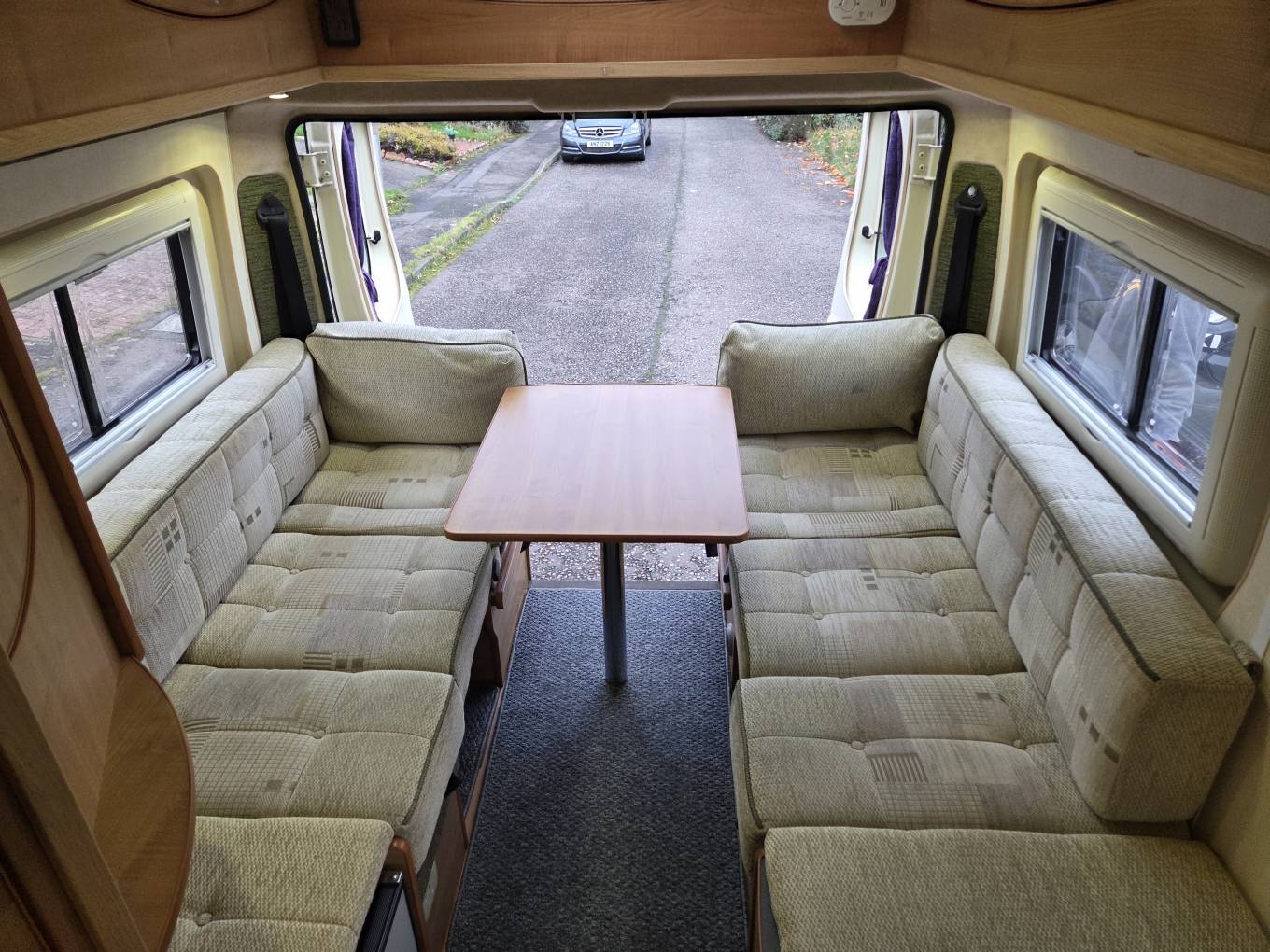At the rear is the large lounge area with its twin side sofas, and with the stowaway table it’s a great area to dine, relax or entertain in. For sleeping, the sofas can be configured as 2 singles or a large double bed.