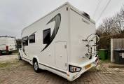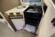 The motorhome comes ready to go, supplied with a 2-cycle rack, levelling ramps, mains hook-up cable, thermal windscreen cover, Tracker, factory-fit alarm, and two gas bottles included.