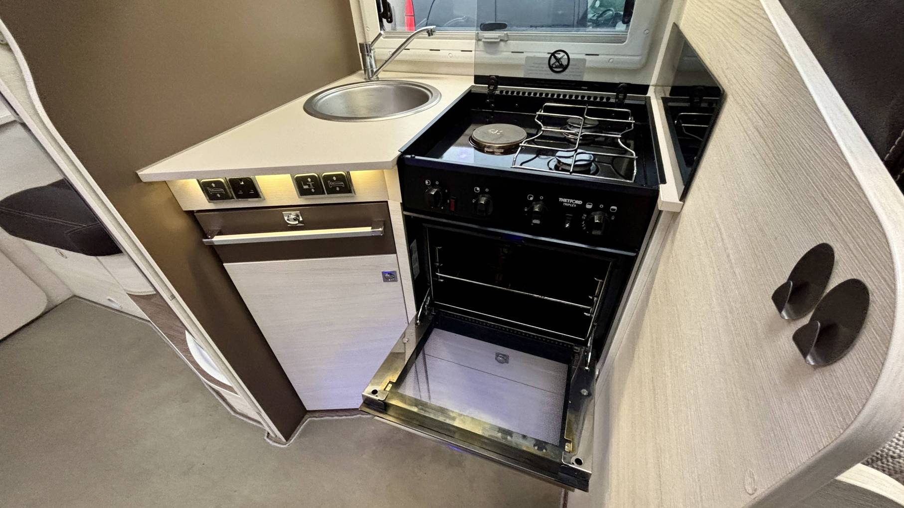 The living space is open and inviting, with good storage throughout and a practical kitchen and washroom setup designed for touring. Whether used for weekends away, longer road trips, or extended European travel, the layout makes day-to-day life easy and comfortable.