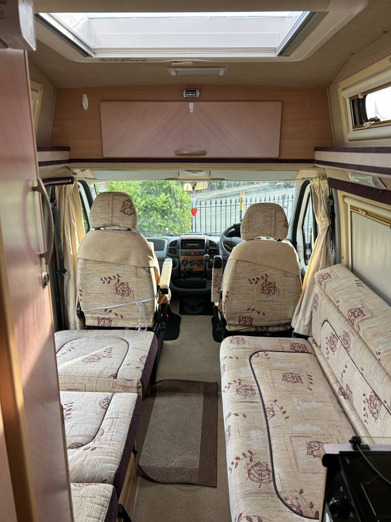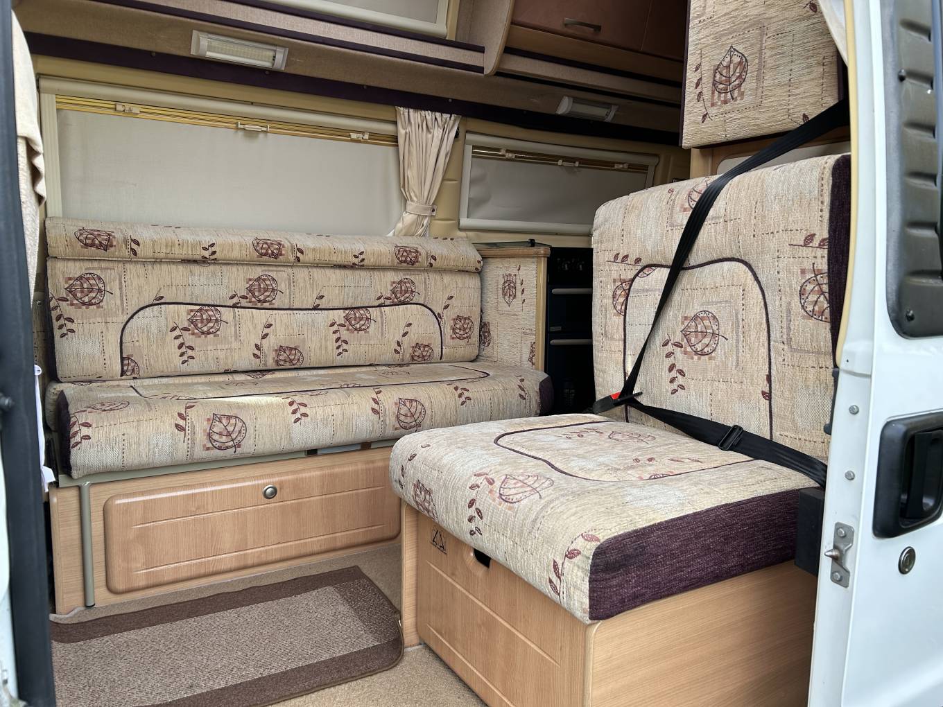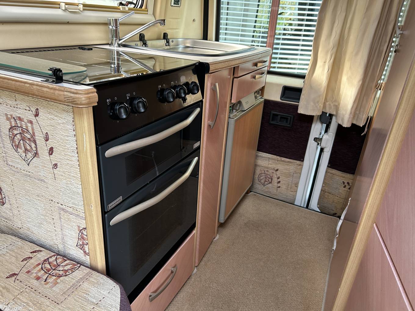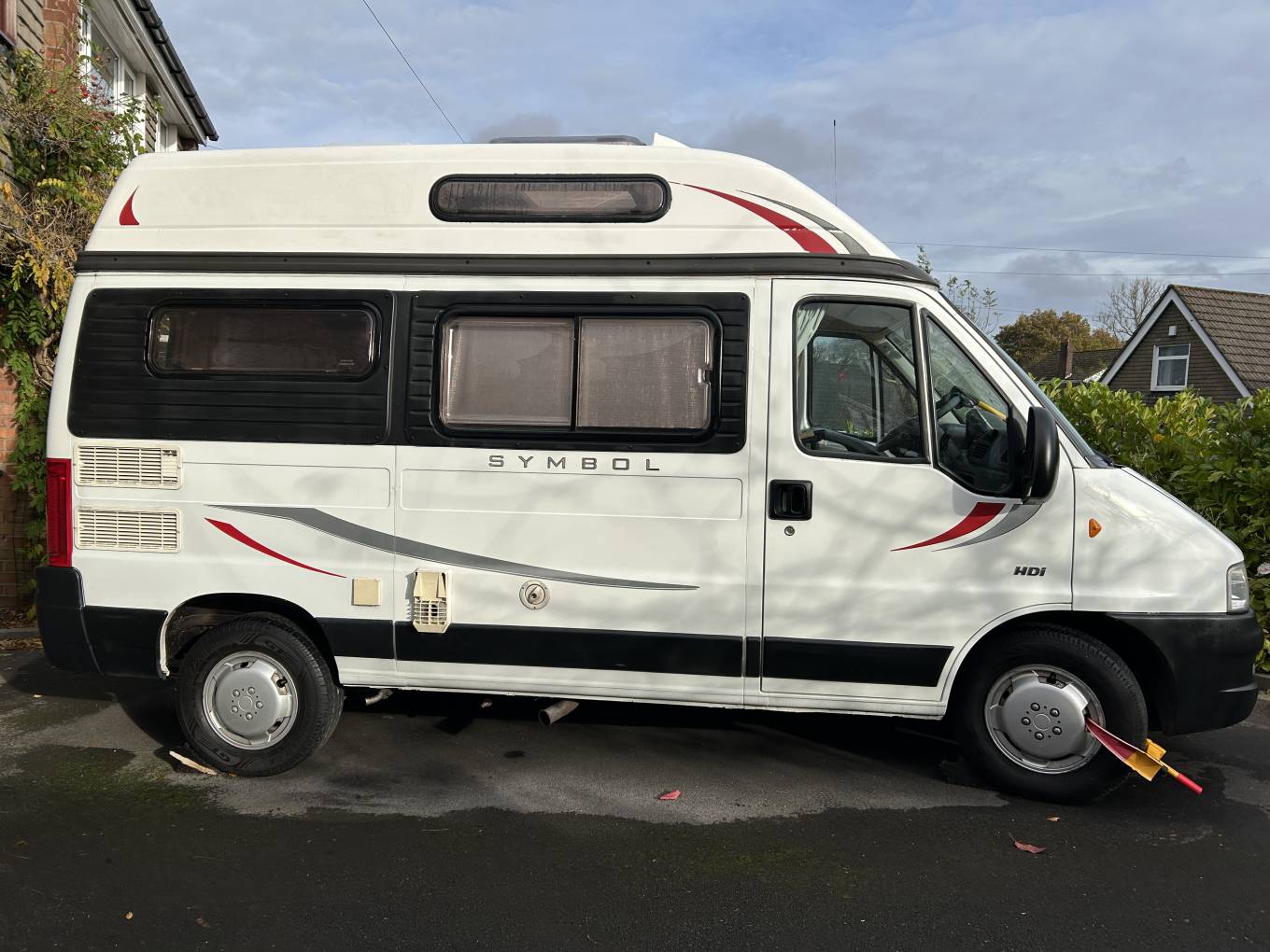 Here at Motorhome Depot Stockport we are delighted to have on offer a 2005 edition of an Auto-Sleepers Symbol for sale. This is based on the popular Peugeot chassis and has the 2.2 litre Diesel engine with the 5 speed manual gearbox and has a comprehensive service history as well as an Mot until Nov 2026. Starting at the rear, we have the kitchen area which includes 3 burner gas hob, grill, oven, hand wash basin and a 3 way fridge. Opposite is the washroom which is comprised of space saving drop down basin, bench style cassette toilet and separate shower controls.The main seating area includes 2 additional 3 point travelling seats and the drivers side seat will convert into a comfortable long bench if required and will also convert into a good sized double bed. The drivers and passengers seat will also swivel to give great seating options.