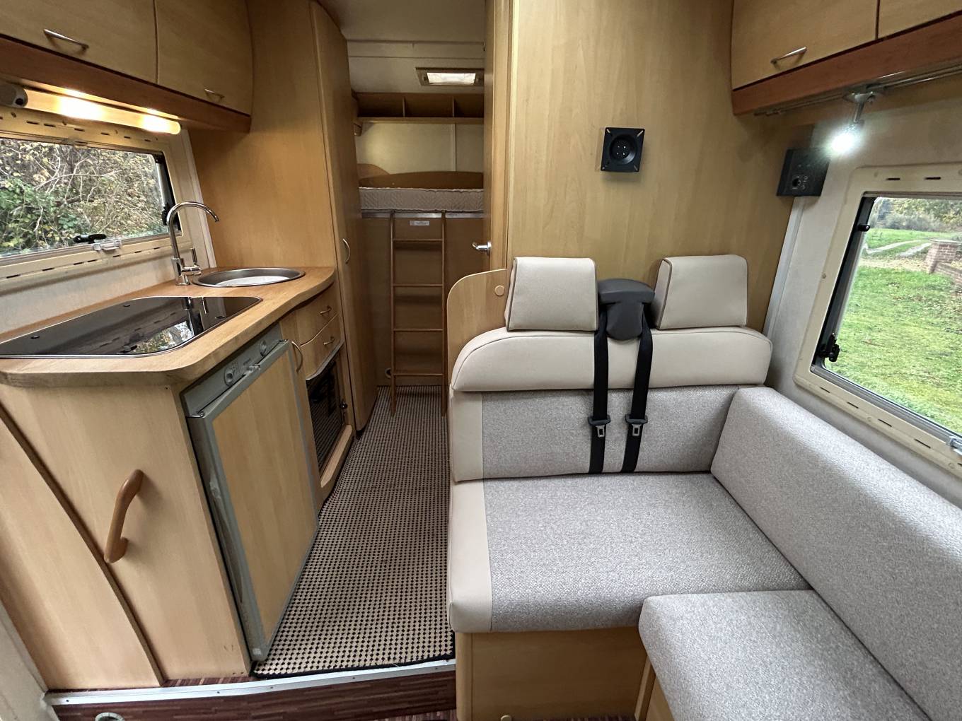 One of the standout features of this model is its massive rear garage providing exceptional storage capacity—ideal for families with bulky gear or bikers needing space for equipment. Powered by a reliable 2.2L diesel engine with a manual gearbox and cam chain (not a belt), it delivers dependable performance and a reassuring drive.