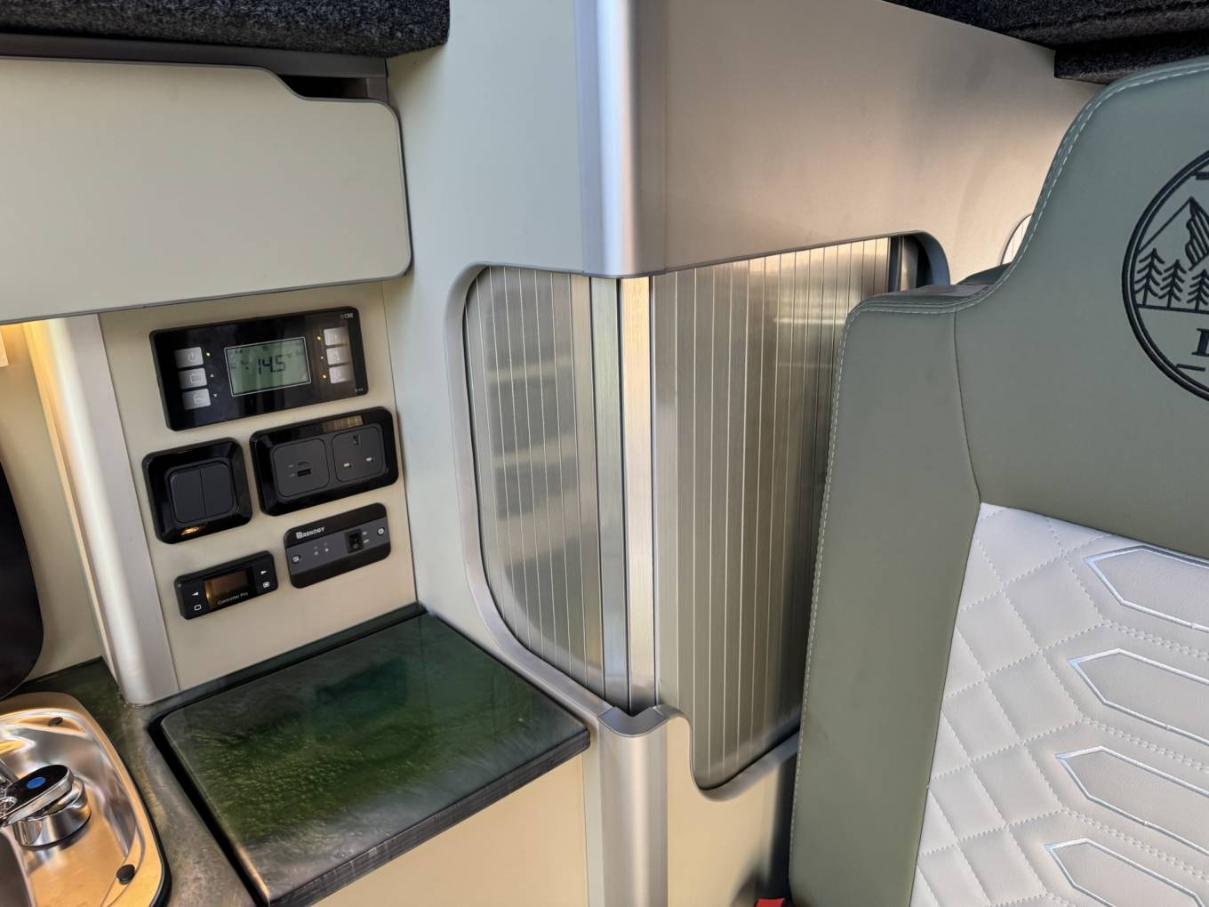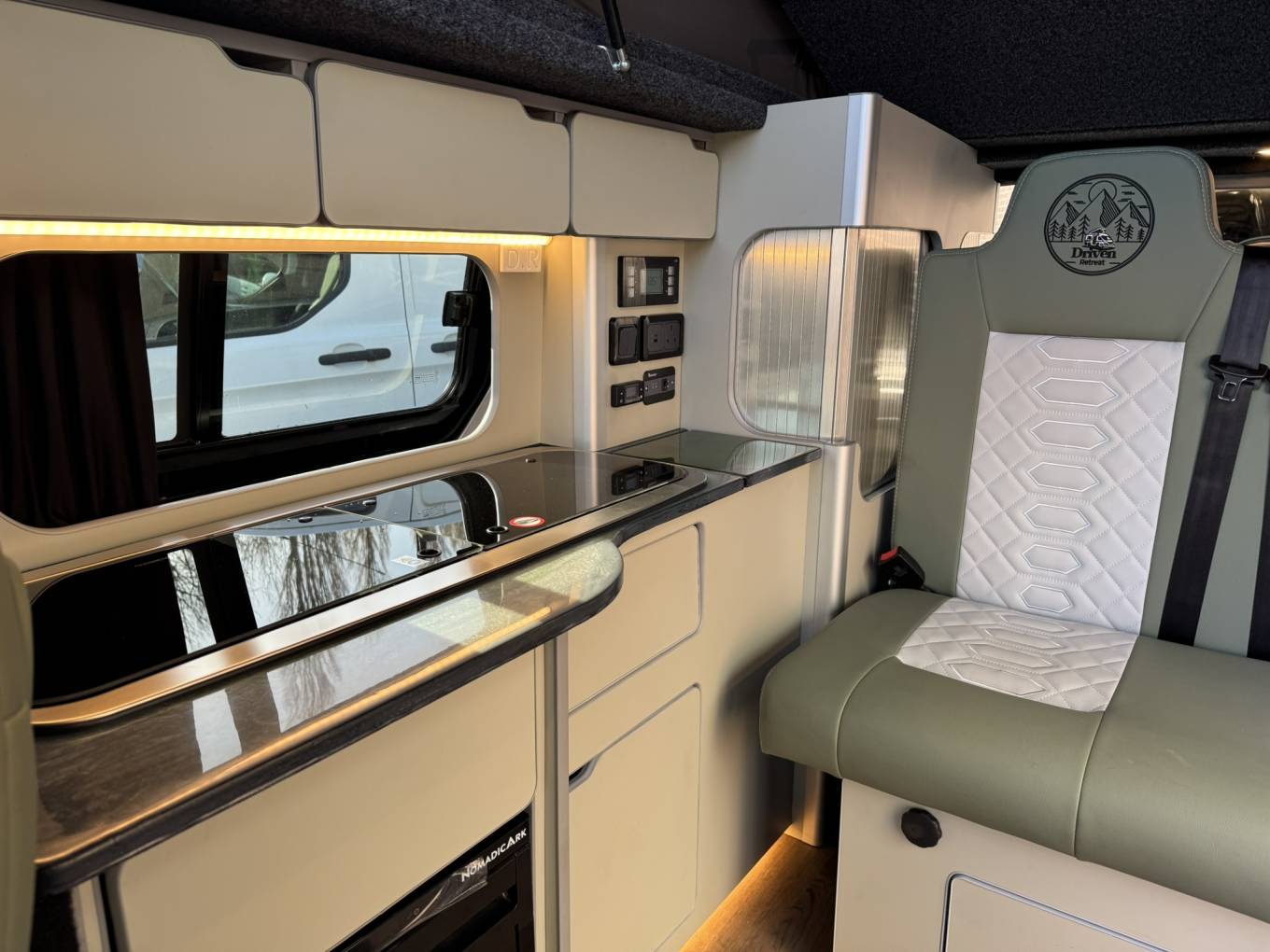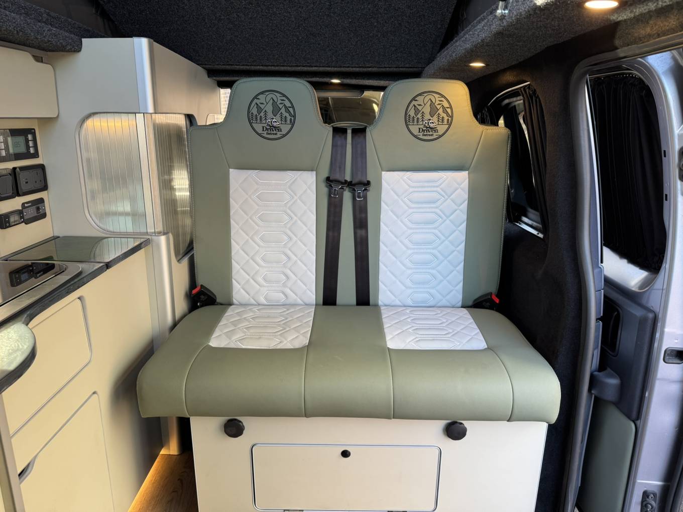 Connectivity and convenience come standard with 3 x 240V plugs, USB & USB-C sockets, and a CBE PC210 control unit managing all onboard systems. Additional thoughtful features include an onboard water tank, rear parking sensors, immobiliser switch professionally installed by Driven Retreat, and even an integrated umbrella—because every detail matters.
