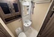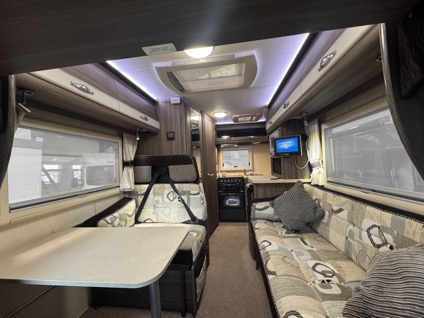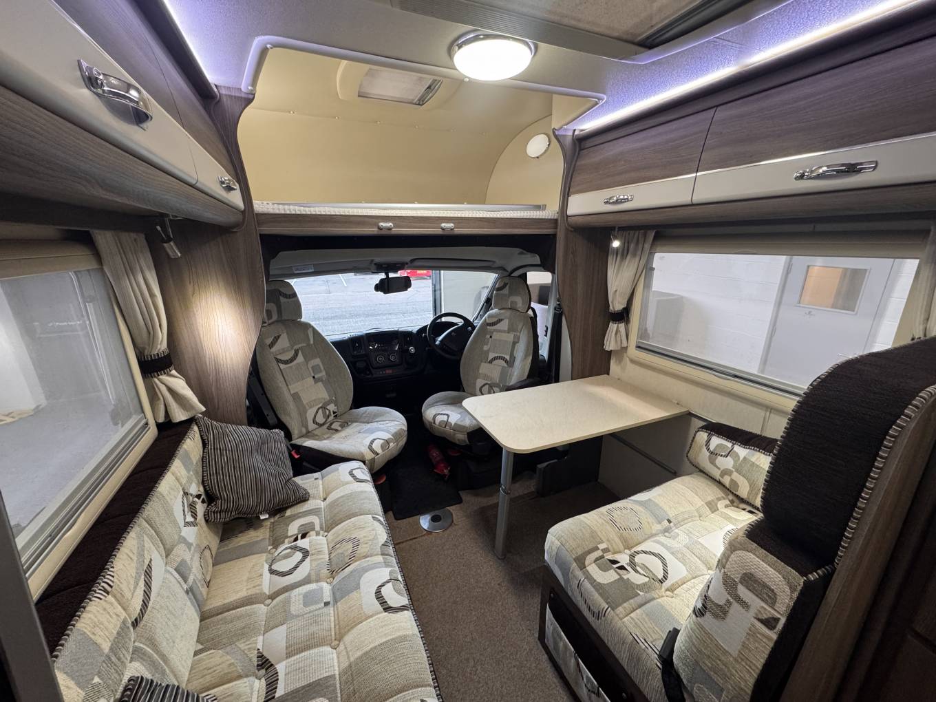 This model is the smallest coach-built on the market that provides comfort, 4 berths, 4 belted seats yet still has a large bathroom, shower, toilet, and kitchen with oven, 3 way fridge/freezer, hot/cold water and blown air heating throughout.