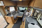 Next we come to the lounge area which is flooded with natural light making it a fabulous spot to relax and unwind in. There is are two side facing sofas that also convert to a large double bed. The front seats swivel and along with the side facing sofa and dinning table makes it a great spot for a family meal.