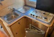 The Kitchen Area has a Hob, Sink, 240V Fridge Freezer plus Microwave