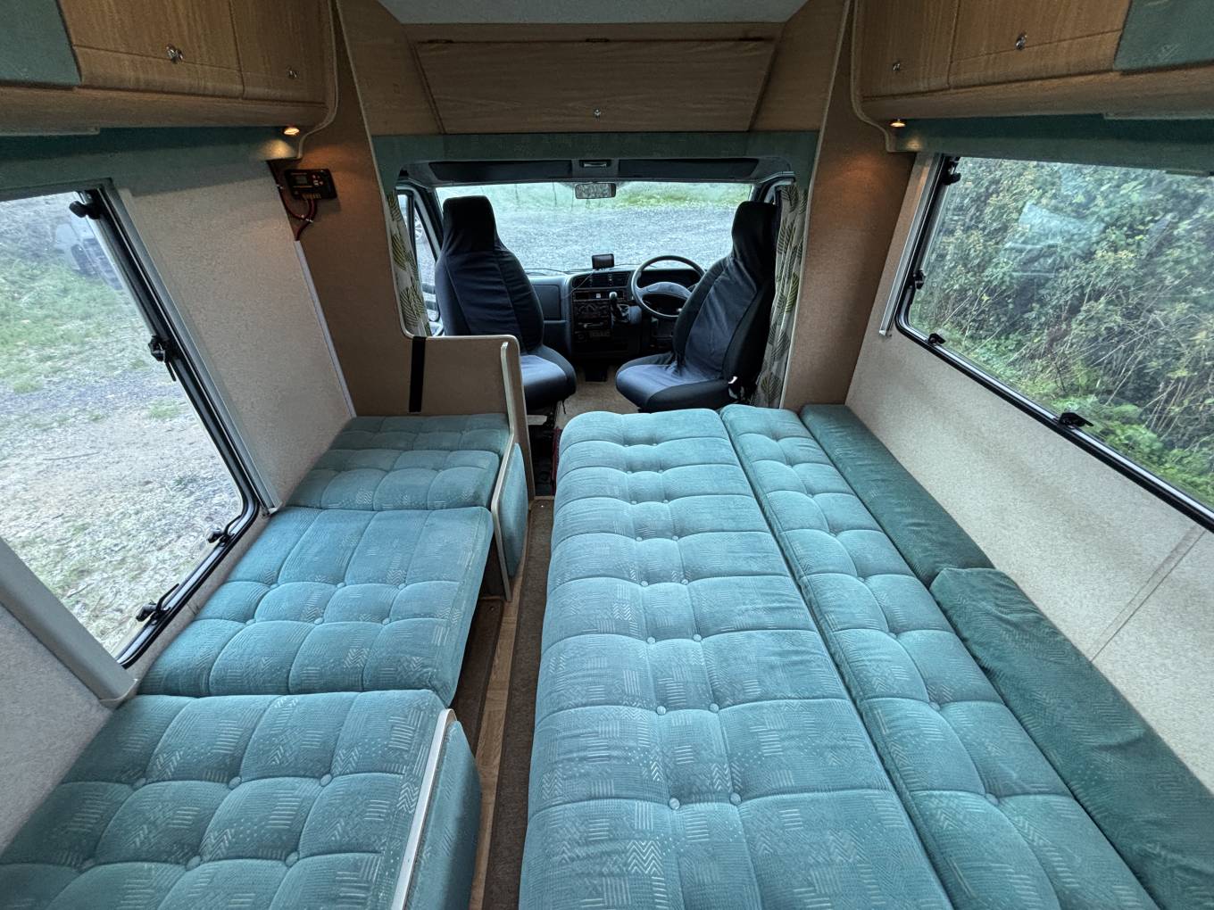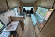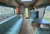 Towards the front of the habitation area is a twin dinette which has a forward facing three point seatbelt and also converts into a single bed. On the opposite side of the motorhome is a side facing sofa which converts to another single bed or a double. There is eye level storage all around the motorhome and storage space under the seats.