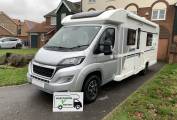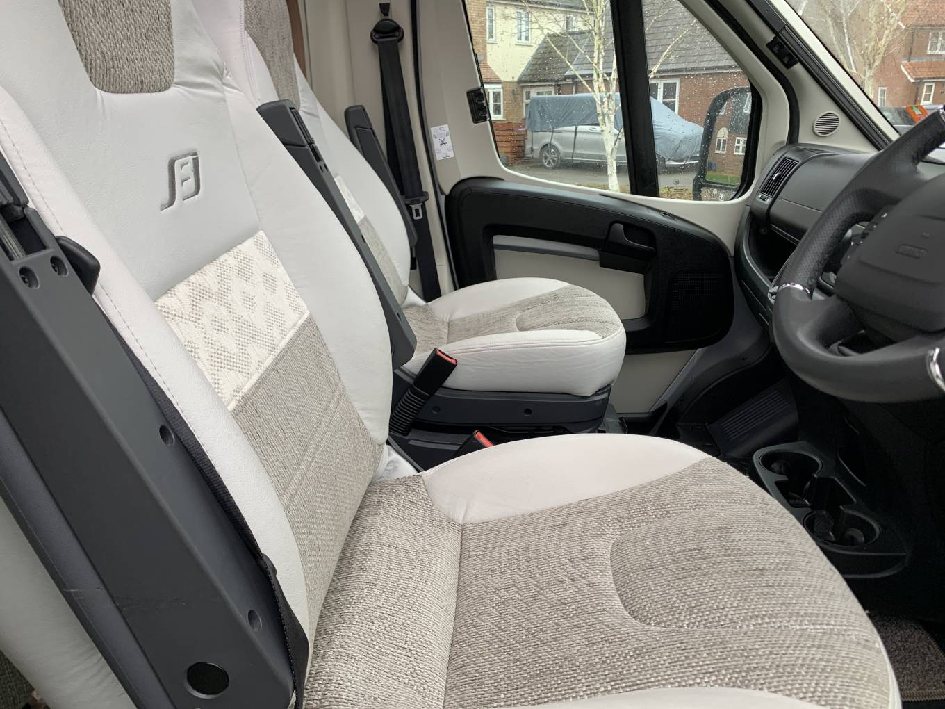 It’s a 2020 4 berth luxury motorhome with 2 seat belts based on a Peugeot Boxer 2.0 TD Ultra-low chassis, 160bhp engine with a manual 6 speed gearbox, well equipped with Remis cab blinds, Air-con, Sat-Nav, Bluetooth connectivity, Traction control, Hill Decent, Cruise Control, Reversing camera and swivel seats.