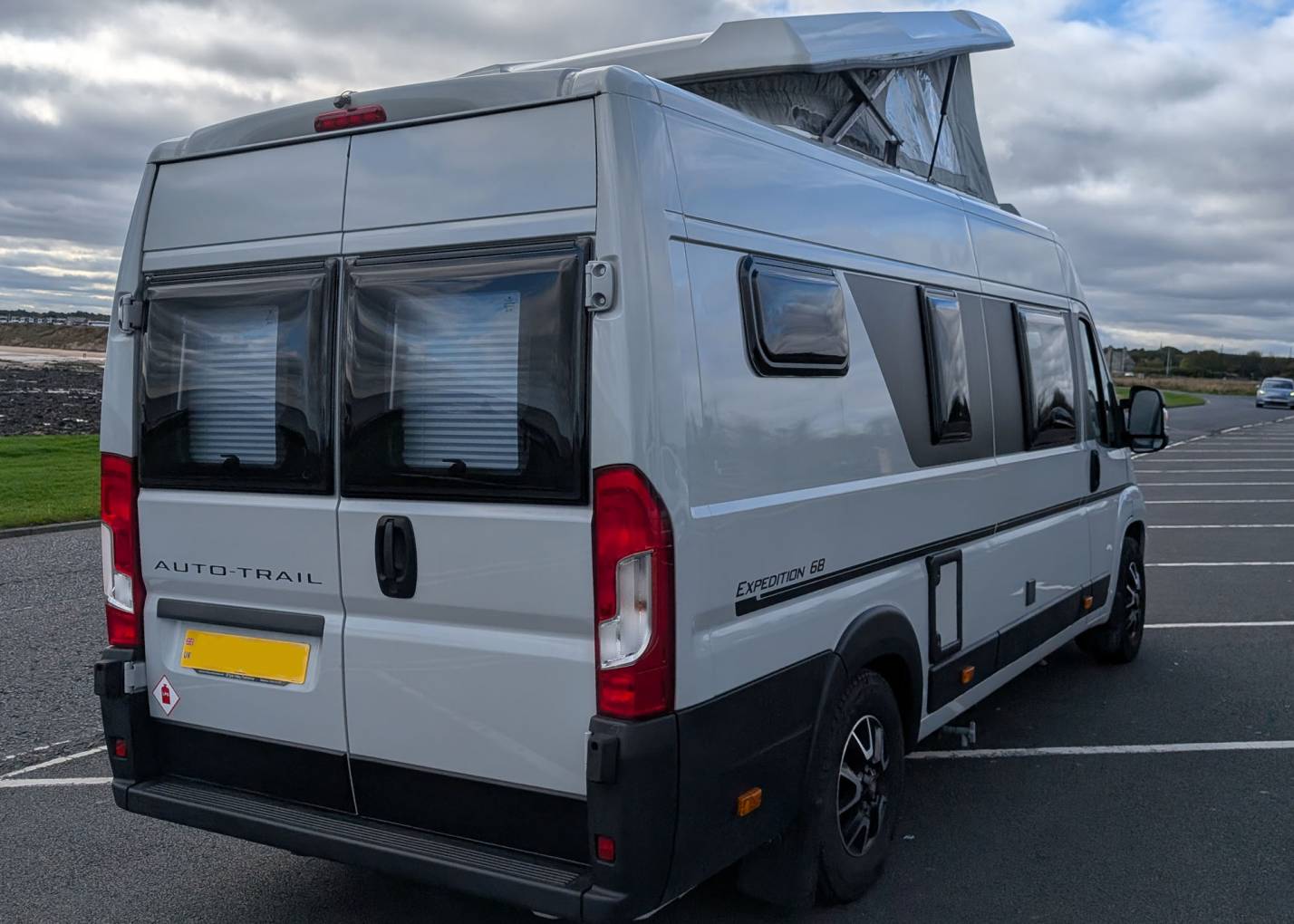 Super condition, roomy and low mileage family campervan with 4 x 3 point belted seats, large roof bed and generous rear double bed over a very well planned rear garage. Plated at 3500KG, the 6.36 metre Autotrail Expedition 68 can be driven on a standard licence and has all the comforts of larger coachbuilt motorhomes including a washroom with shower, heating and hot water plus a decent kitchen, yet with the capacity to accommodate all manner of hobby and outdoor interests thanks to its copious storage.