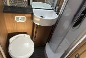Powered by a smooth 6-speed manual gearbox, the Tracker RB is equipped with 2 travel belts, swivel captain seats, and a reversing camera, ensuring comfortable, confident driving. Inside, the motorhome is well-appointed with Truma heating, habitation air conditioning, and a fully fitted kitchen featuring a fridge/freezer, microwave, oven, grill, and hob. A fold-out dining table adds convenience to mealtimes, while the spacious washroom provides excellent onboard facilities, making long trips effortless.