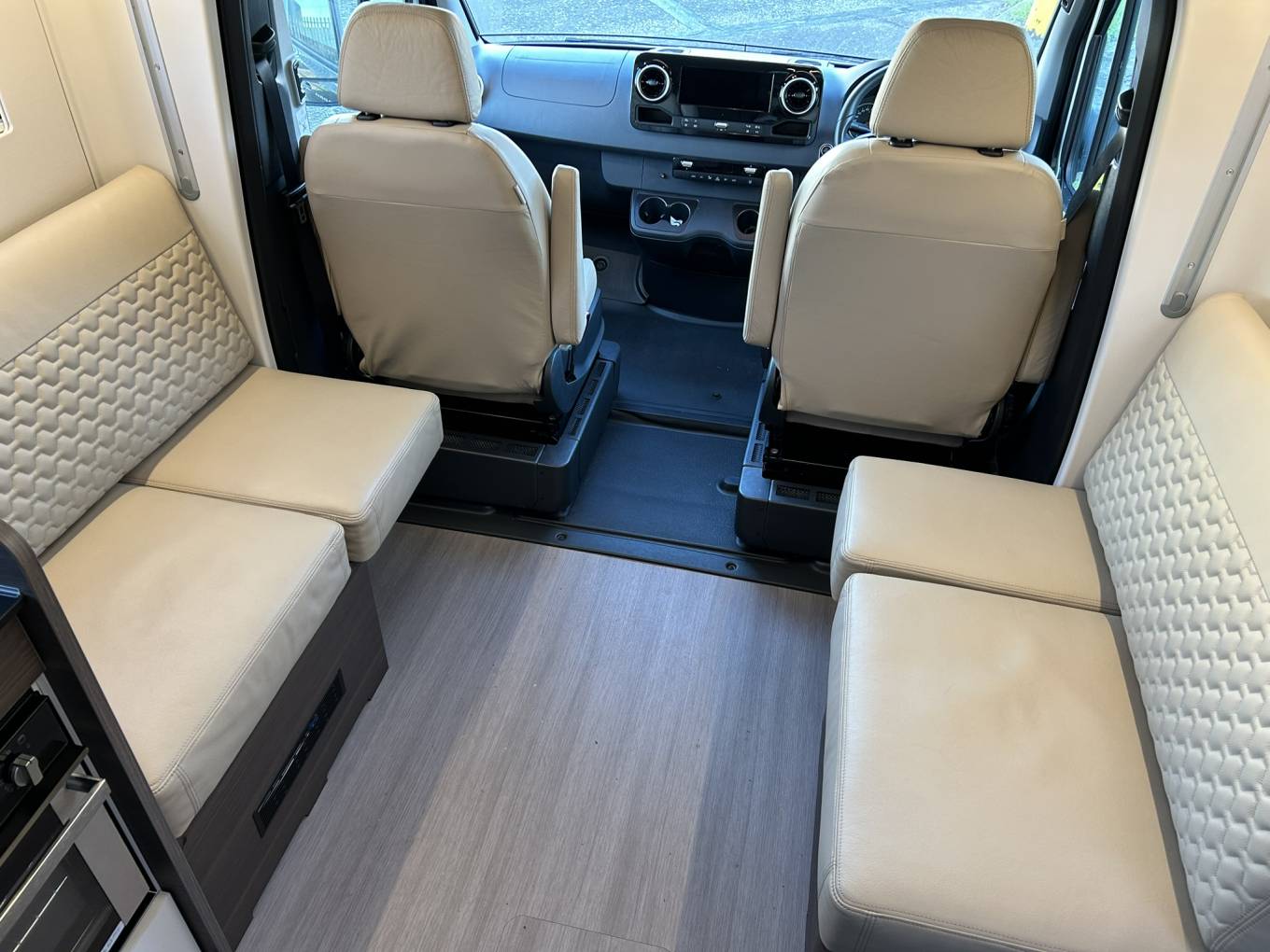 Driving is effortless and secure, with Mercedes’ automatic transmission, adaptive cruise control, and the advanced MBUX infotainment system offering navigation, connectivity, and entertainment at your fingertips. The self-levelling system adds convenience when setting up on-site, ensuring perfect stability at the touch of a button.