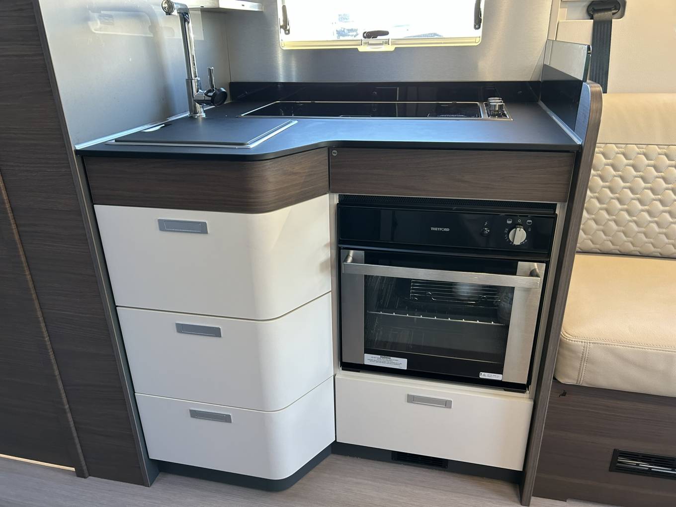 Inside, the Matrix Supreme delivers a truly premium touring experience. The layout features a luxurious rear island bed and an electric drop-down bed, ensuring flexible sleeping arrangements without compromising living space. The interior is finished to an exceptional standard, with high-quality materials and a contemporary design that feels more like a boutique apartment than a motorhome.