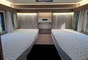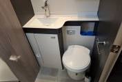 At the rear of the vehicle are raised single beds located over a garage. The bed can be screened off from the bathroom facilities.