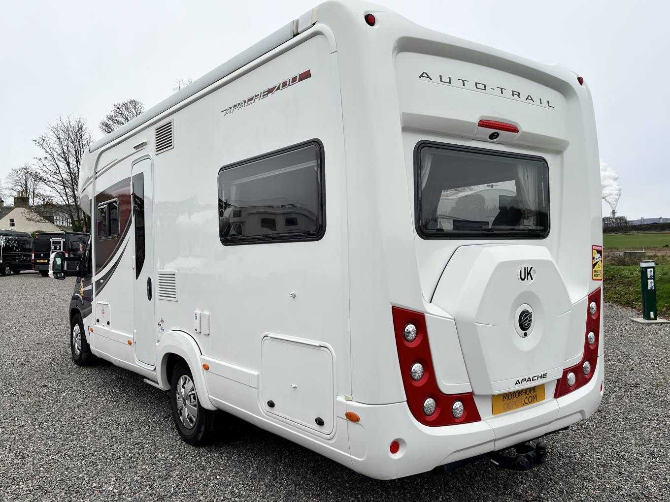 This 2018 Autotrail Apache 700 is well maintained with only 2 owners from new. The cab benefits from air conditioning, reversing camera, cruise control, media player with Sat Nav