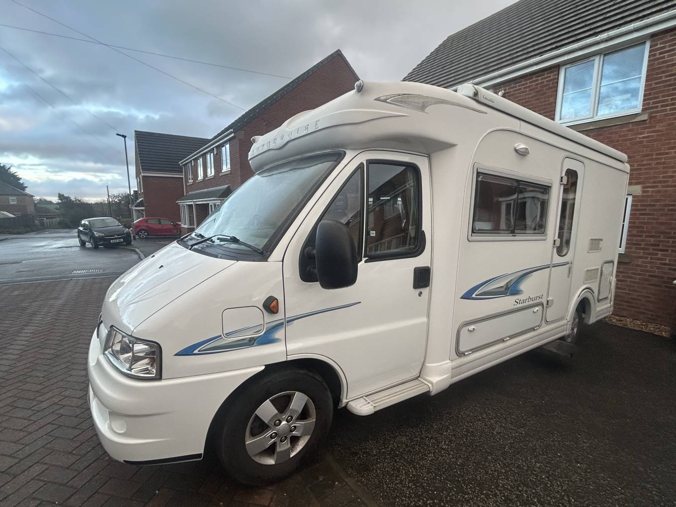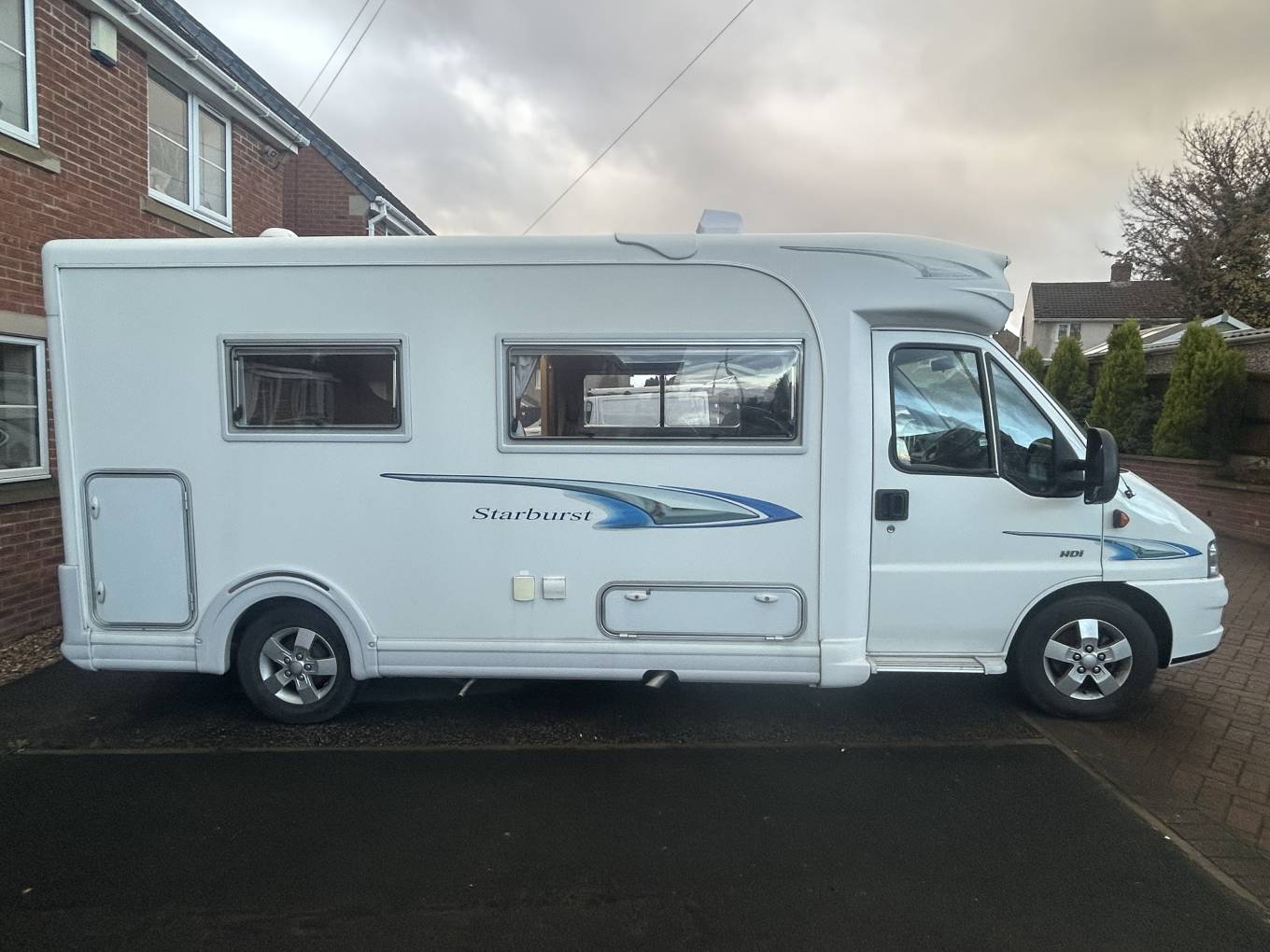 Here we have a Autocruise Starburst on a Peugeot 2.2 manual, this 2 berth with 2 belts is the perfect layout to have the trip of a life time, Both captain seats turn to create a large dining area, a chance to watch Tv, simply relax, or enjoy a meal. The two benches can be used as singles, or pulled out and made into a large double bed. There are plenty of wall storage units and space in the benches. The kitchen area has a large work surface, sink with mixer tap, oven, grill, gas hob and extractor fan, there is a 3 way fridge to keep you food fresh and large cupboards to keep you utensils and dried food also a pull out cupboard for more work space. The wash room is definitely the highlight of this motorhome, the separate shower cubicle is a great space to get freshened up after a day of adventure, it has a cassette toilet, mirror, sink and storage. It has an off grid water and diesel heating system. Outside has a wind out canopy, storage access and a gas bottle. It has had a recent cam belts and water pump change in 2025. This motohome can be viewed in Mansfield Barnsley by appointment only. Part exchange and finance are available.
