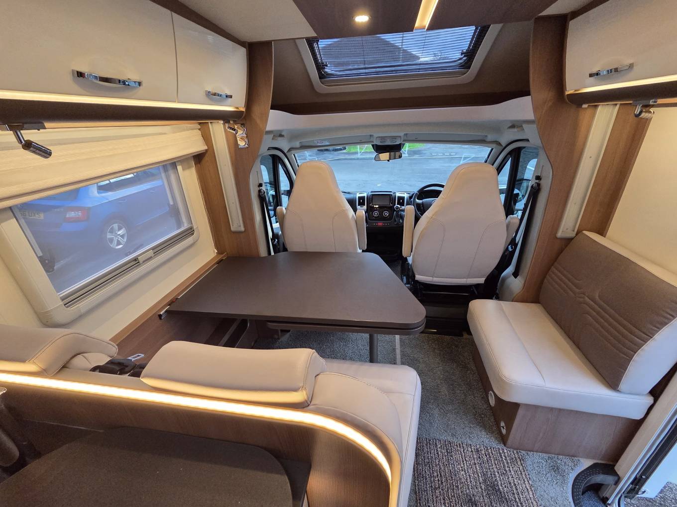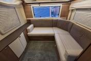 The L-shaped rear lounge is extremely spacious and is complimented by the forward dinette area with swivelling cab seats giving a very generous social area with four travelling and sleeping with ease.