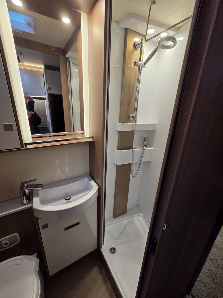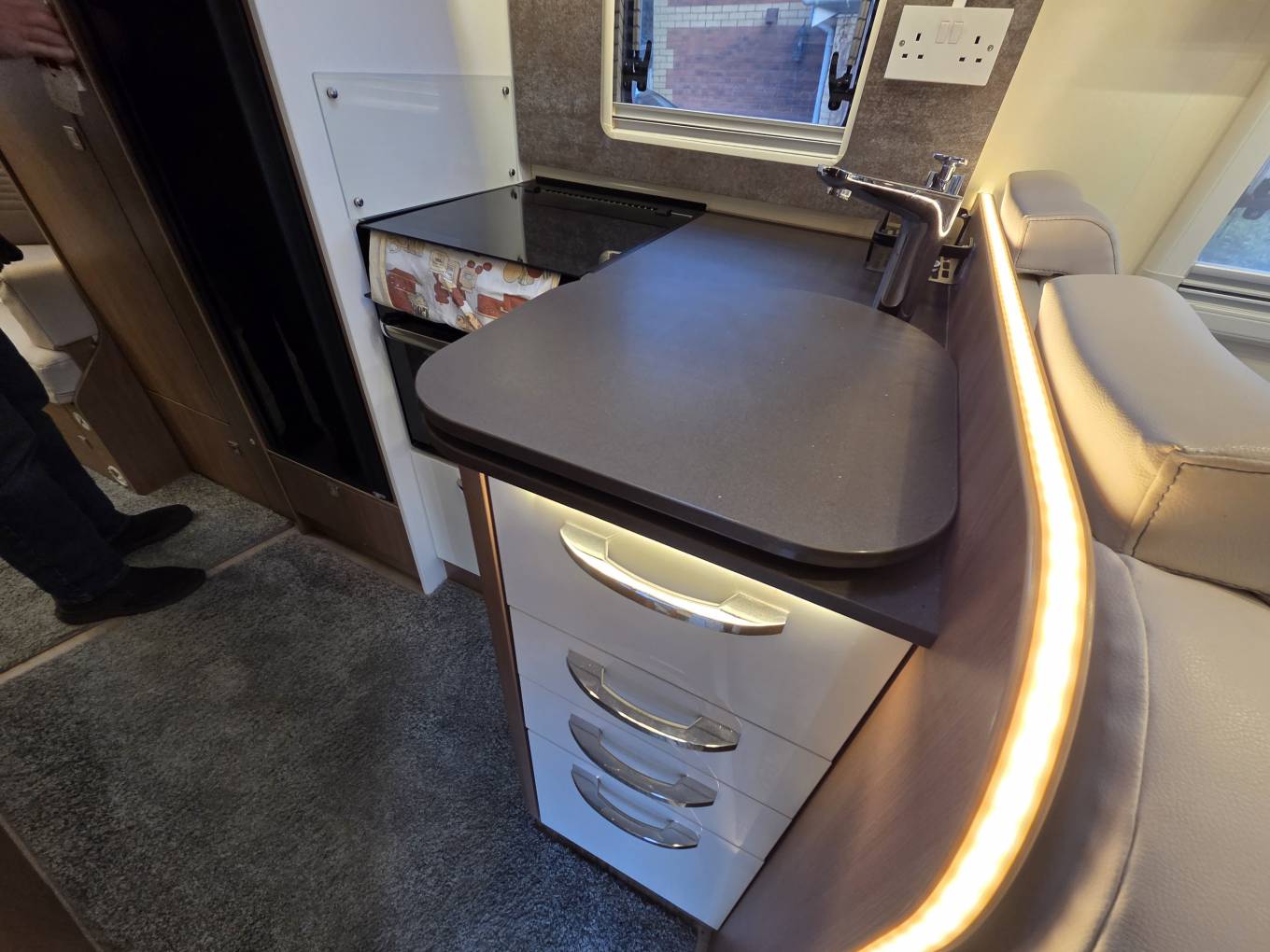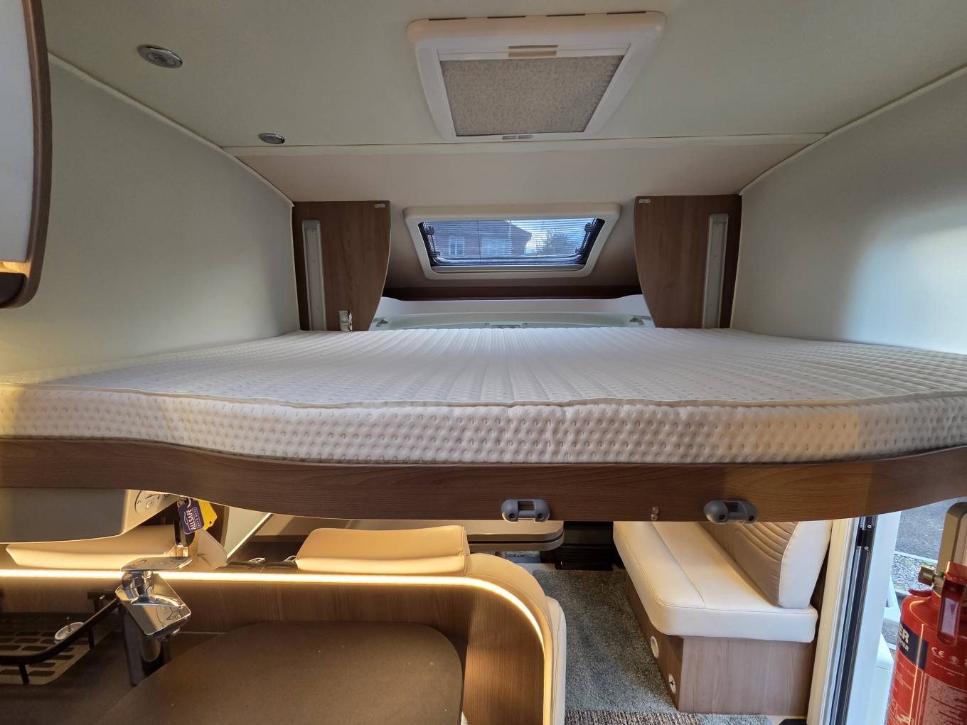 The internal layout offers two electrically operated drop down double beds over the rear living area and dinette so this motorhome offers practicality and luxury in one package. The beds can be left made up and simply lowered or raised as needed, freeing up space for living and entertaining.