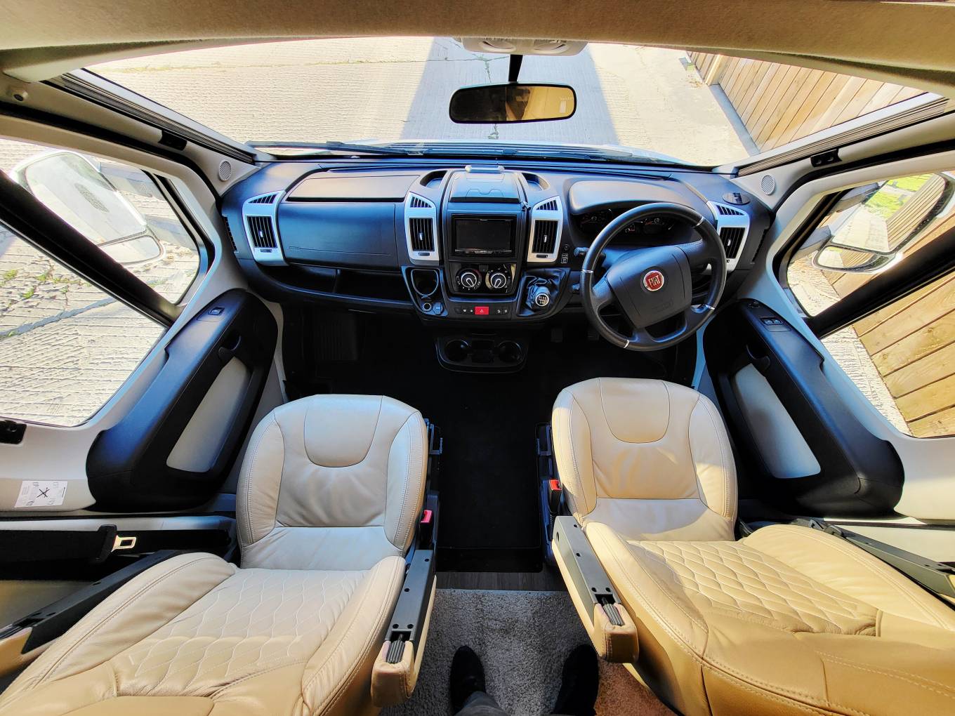 Large seating area for 4-6 + with leather seats (front 2 seats heated) with Captain swivel seats.