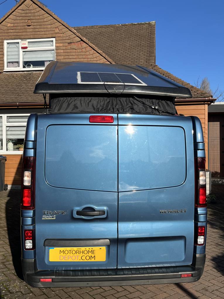 Motorhome Depot are happy to present this Renault Trafic Sport Pop Top campervan, first registered in January 2016 this van has covered just 95,621 miles from new and it is based on the ever popular short wheelbase S217 Sport with the 120Bhp 6 speed manual gearbox. With 4 berths and 5 seat belts this van would work well for either a family or for a couple / solo traveler.