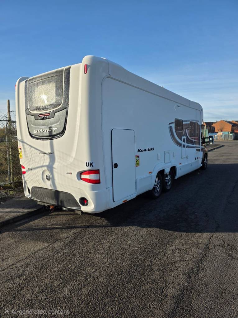 Motorhome Depot are pleased to offer this Swift Kon-tiki 675 Luxury 4 Berth, 4 Belt Motorhome with Fixed Rear Bed and Large Garage. This Swift Motorhome comes with extensive living space and huge storage capacity and is based on the Fiat Ducato 2.3l engine with automatic gearbox