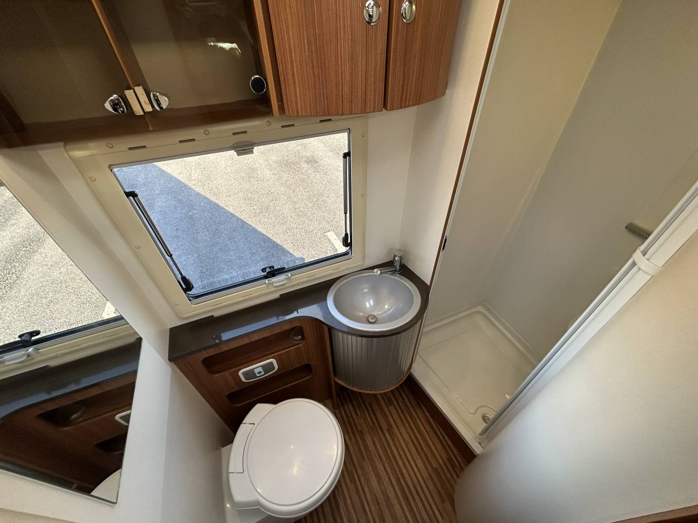 - Rear washroom with a separate shower, vanity unit with sink and mixer tap and cassette toilet
