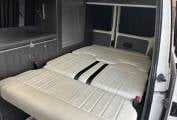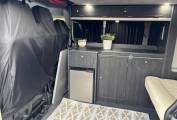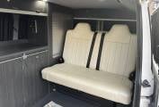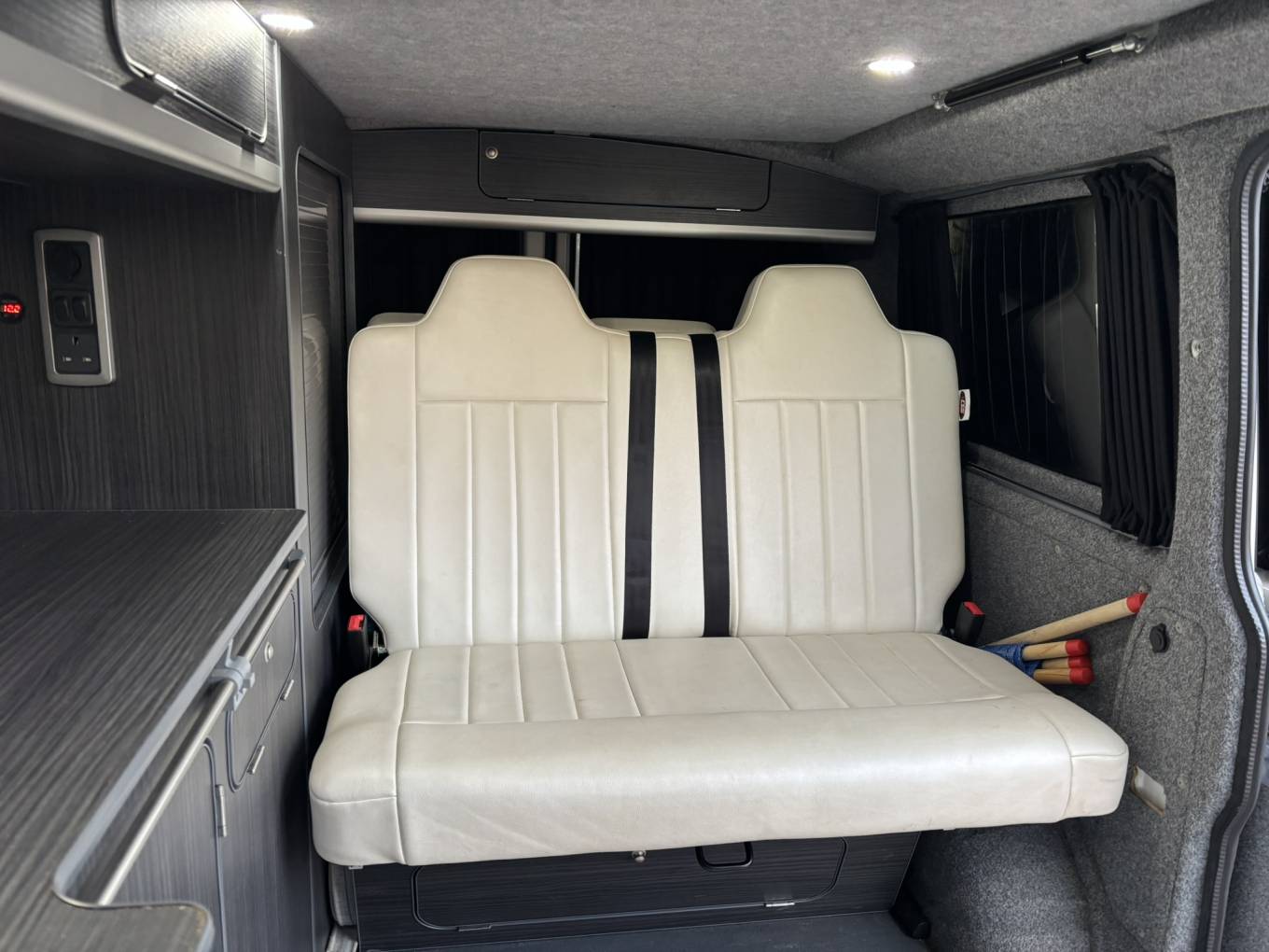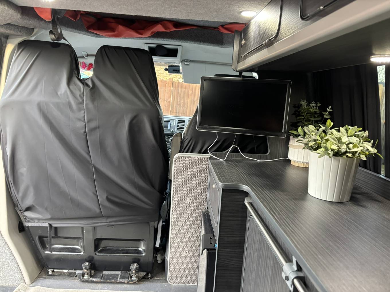 This campervan comes with (but not limited to): Pop-top roof, Rock ’n’ Roll bed with two travelling belts, Fridge/freezer, 12V electrics, 240V hook-up, LED interior lighting, TV, DVD player, Storage cupboards, Vinyl flooring, Electric windows, Electric mirrors, Central locking.