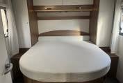 Sleeping is via the End Bedroom where the Luxury Rear Island Bed is situated. An additional Large Comfortable Double is located via the Pull Down Over Cab Bed. ( there is also the possibility of a fifth bed from the dinette area via and addition made by the owner and included if required )