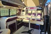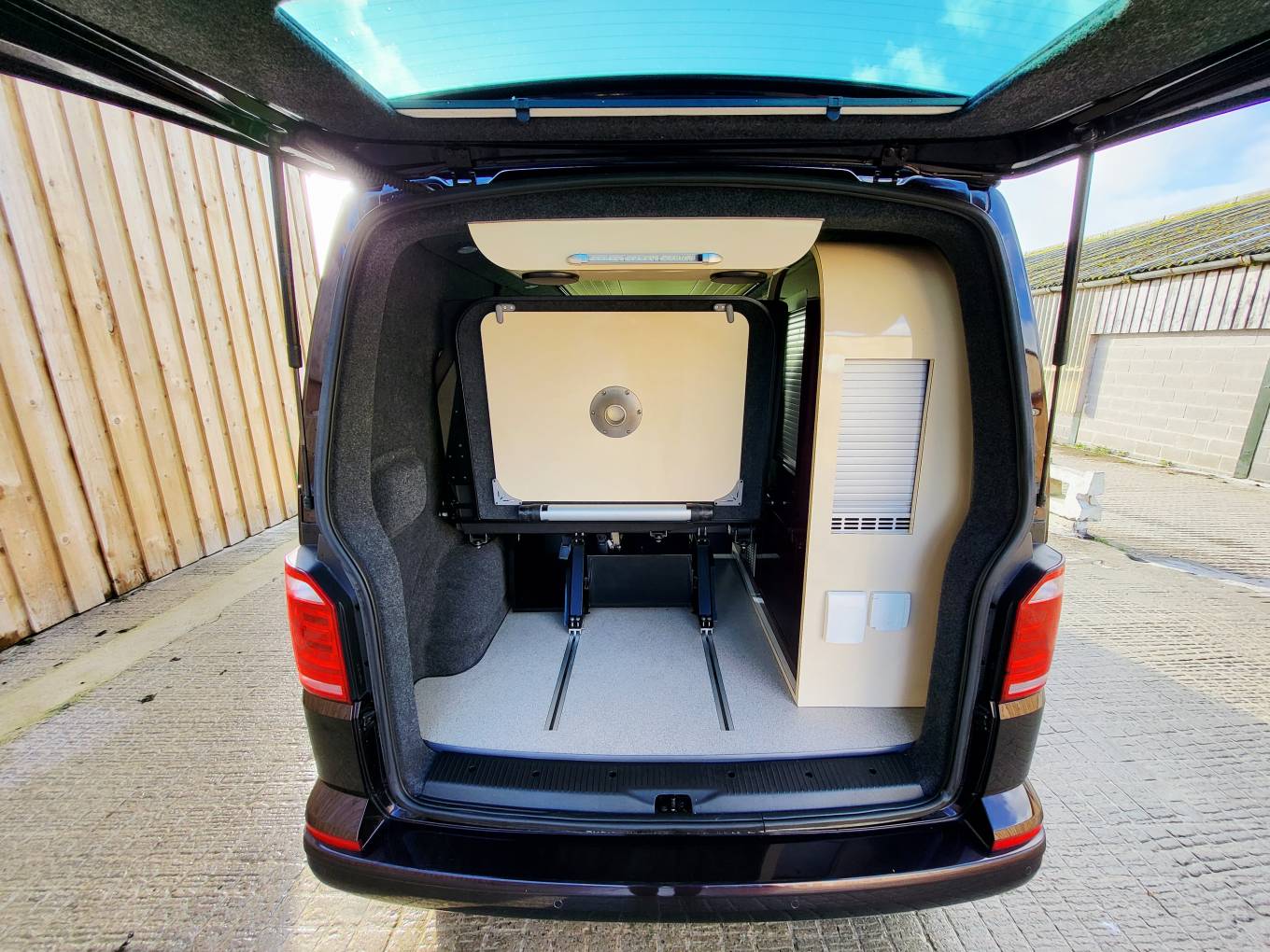 The rear bench seat /bed slides on rails to enable either maximum boot space or maximum living space.