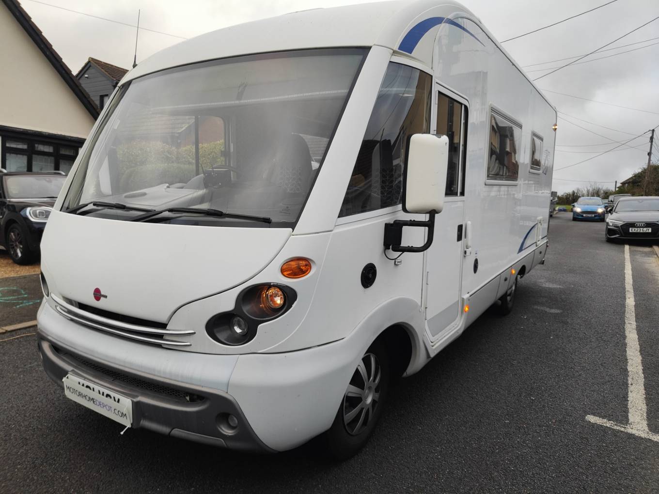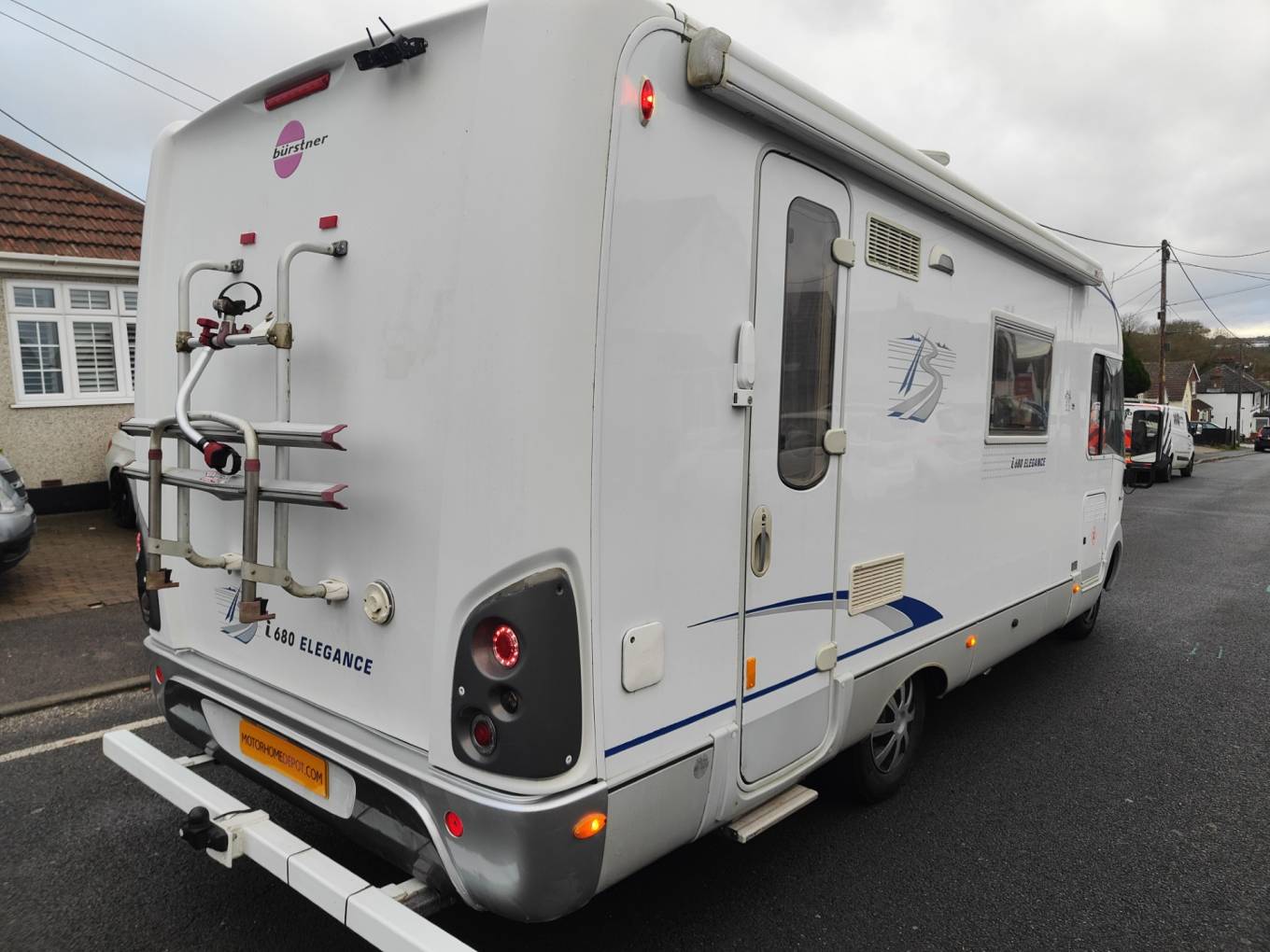 This is a nice example of the flagship Burstner Elegance 680. This A class motorhome features the drop down double above the cab with a second double in the front living area. There is a spacious washroom to the rear with separate shower and a well equipped centre kitchen with oven and a brand new Dometic full height fridge freezer. This low mileage example has covered only 43k miles with great history. This example includes solar panel, cycle rack, towbar, awning, tv aerial and silver screens for the cab. Based on the excellent Fiat Ducato with the desirable 2.8 jtd with a 5 speed manual gearbox and cab aircon. Drives superb. Based in Kent and more pictures available. MOT until June 26.