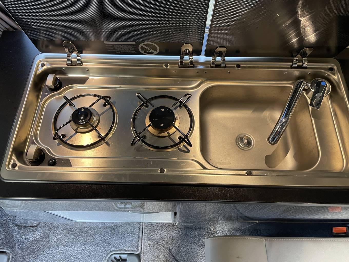 The pop-top roof creates generous standing space, making mornings comfortable and practical. Inside, you’ll find a well-designed layout with a two-belt rear seat that folds into a rock-and-roll bed, plus a hob, sink, fridge, refillable LPG gas bottle, onboard water tank, and an external awning rail. Additional features include a reversing camera, towbar, and a Bluetooth-enabled head unit – all adding to its usability and convenience.