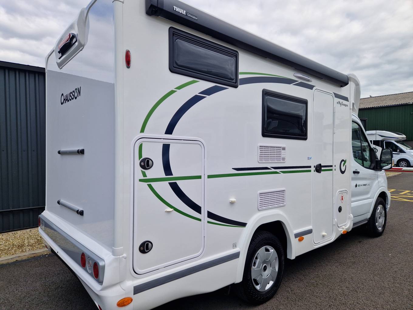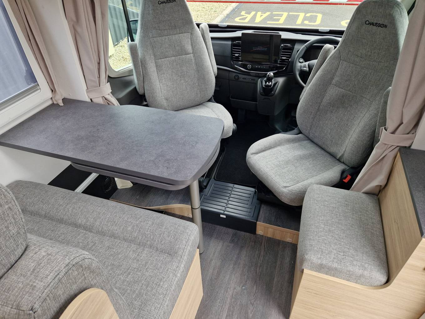 2025 Chausson S514 First Line 3 berth motorhome. With coach built insulation qualities and the narrow dimensions of a van, the first Line model has much to offer. The huge specification includes a Ford Transit 3500kg chassis, 1995cc 130hp engine, 6 speed manual transmission and Ford safety pack ++ First Line accessory pack including awning, solar panel, door fly screen, cab blinds ++ Connect Pack with DAB upgrade & reverse camera ++ Cab air con ++ Cruise control ++ Twin Swivel chairs ++ Passenger air bag ++ On the road heating ++ 7 year body warranty ++ Grade 3 IRP insulation ++ Washroom with shower ++ 132cm x 189cm double bed ++ 87L fridge freezer ++ Hob & oven ++ 100% LED lighting ++ USB ports ++ Removable carpets ++ Finance & part exchange available.