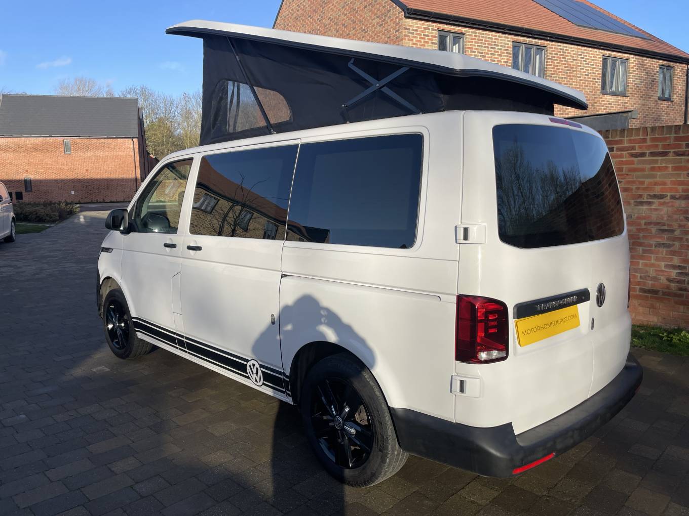 Discover the freedom of the open road with this stunning VW T6.1 Short Wheelbase Campervan, newly converted and completely unused. Finished in crisp White with sleek black decals and matching black alloy wheels, it strikes the perfect balance of style and adventure-ready practicality.