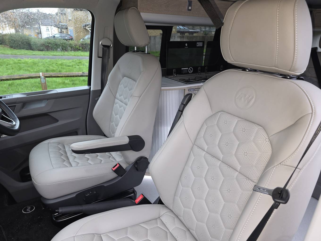 Swivel front seats and stow away table create a dining/lounge area. With the added bonus of a 160w Solar Panel, WIFI , 12v 230v and USB points throughout and a Webasto AirTop STC Heater there is everything you need to ensure a comfortable adventure.