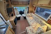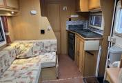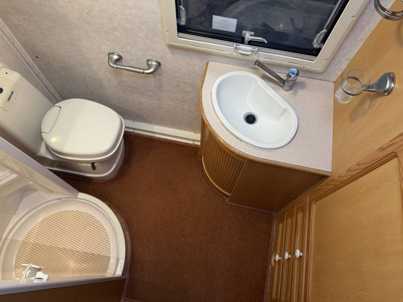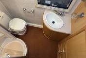Starting at the rear, you have the highly desirable rear washroom which includes a Thetford cassette toilet, modern washbasin with mixer tap, a good sixed a mirror and a separate full length shower along with plenty of storage cupboards too.