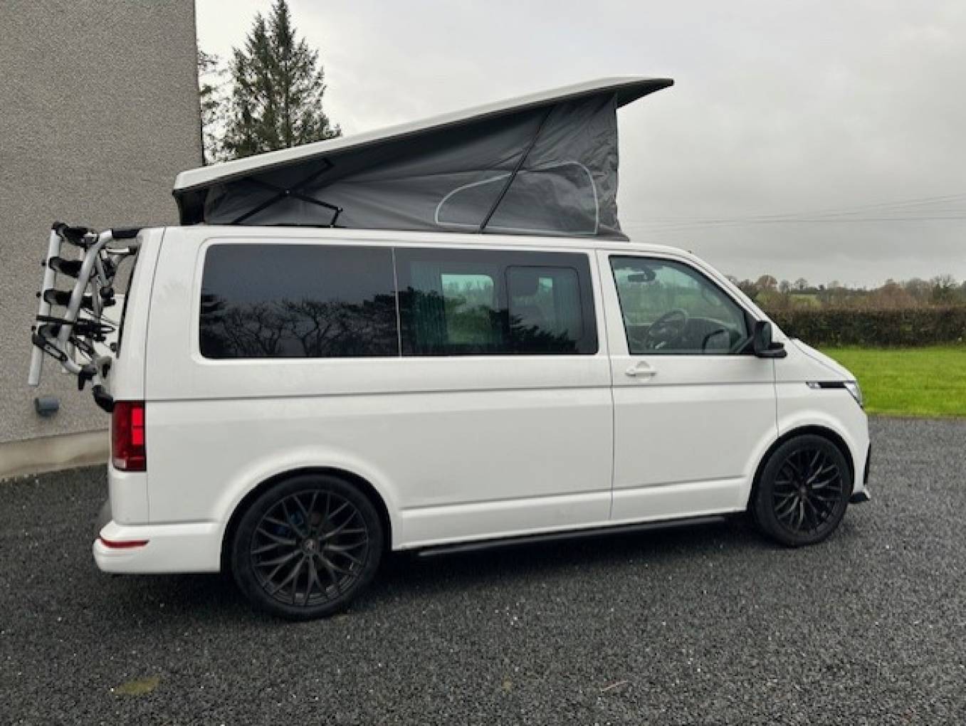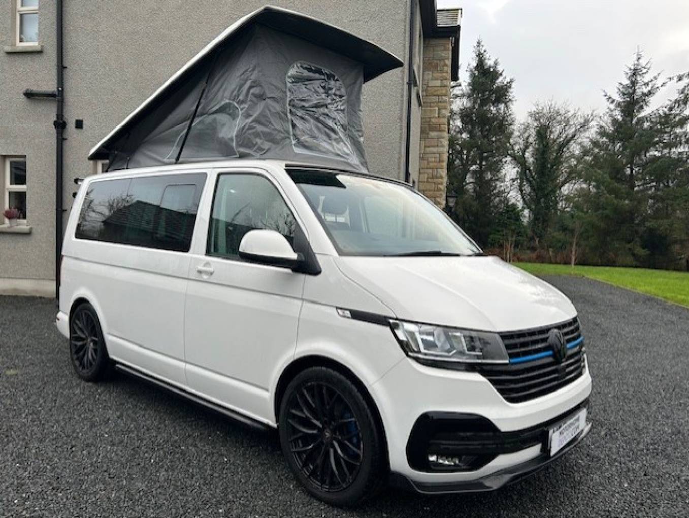 2023 VOLKSWAGEN T30 HIGHLINE TRANSPORTER CAMPERVAN FOR SALE. Based on a VW chassis with a 2.0L TDI engine and an automatic transmission. Sleeping places for 3-4 people with 5 travelling seatbelts. The campervan is compact and easily parked with 25,600 miles travelled.