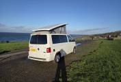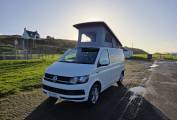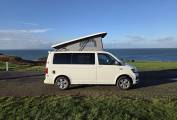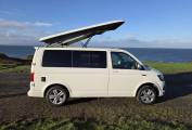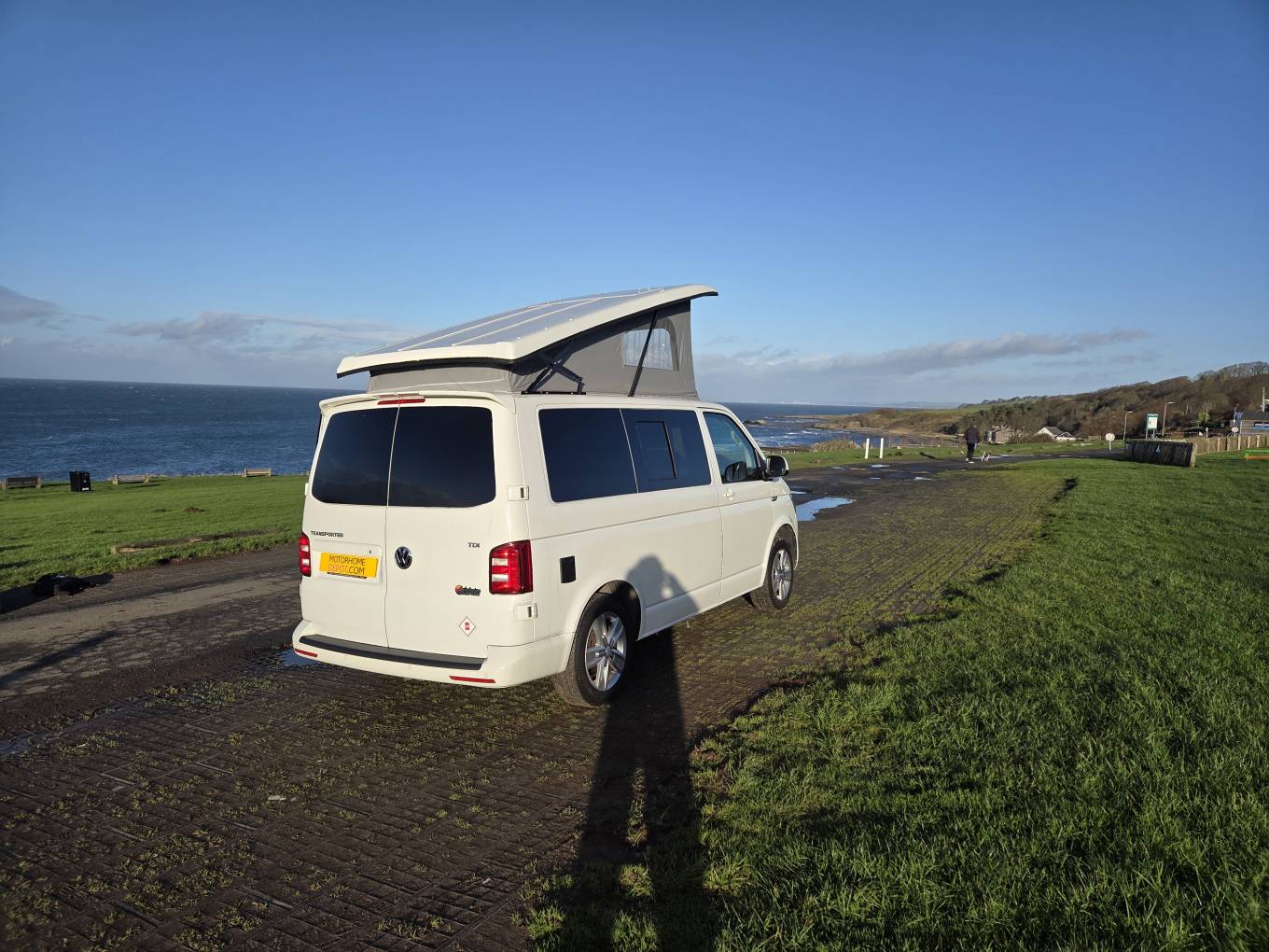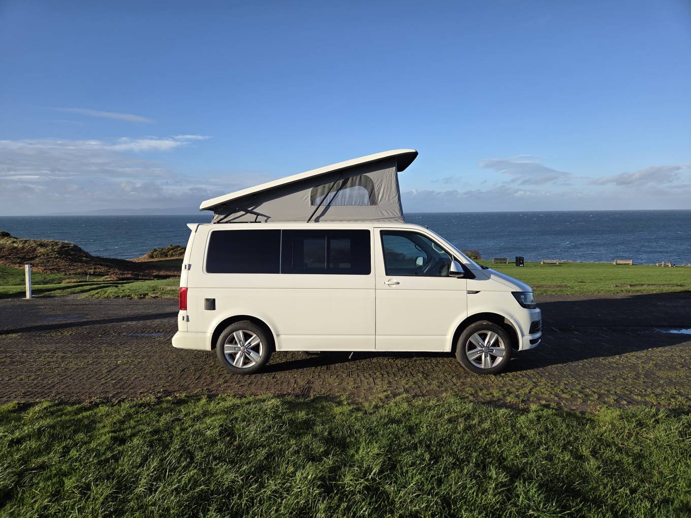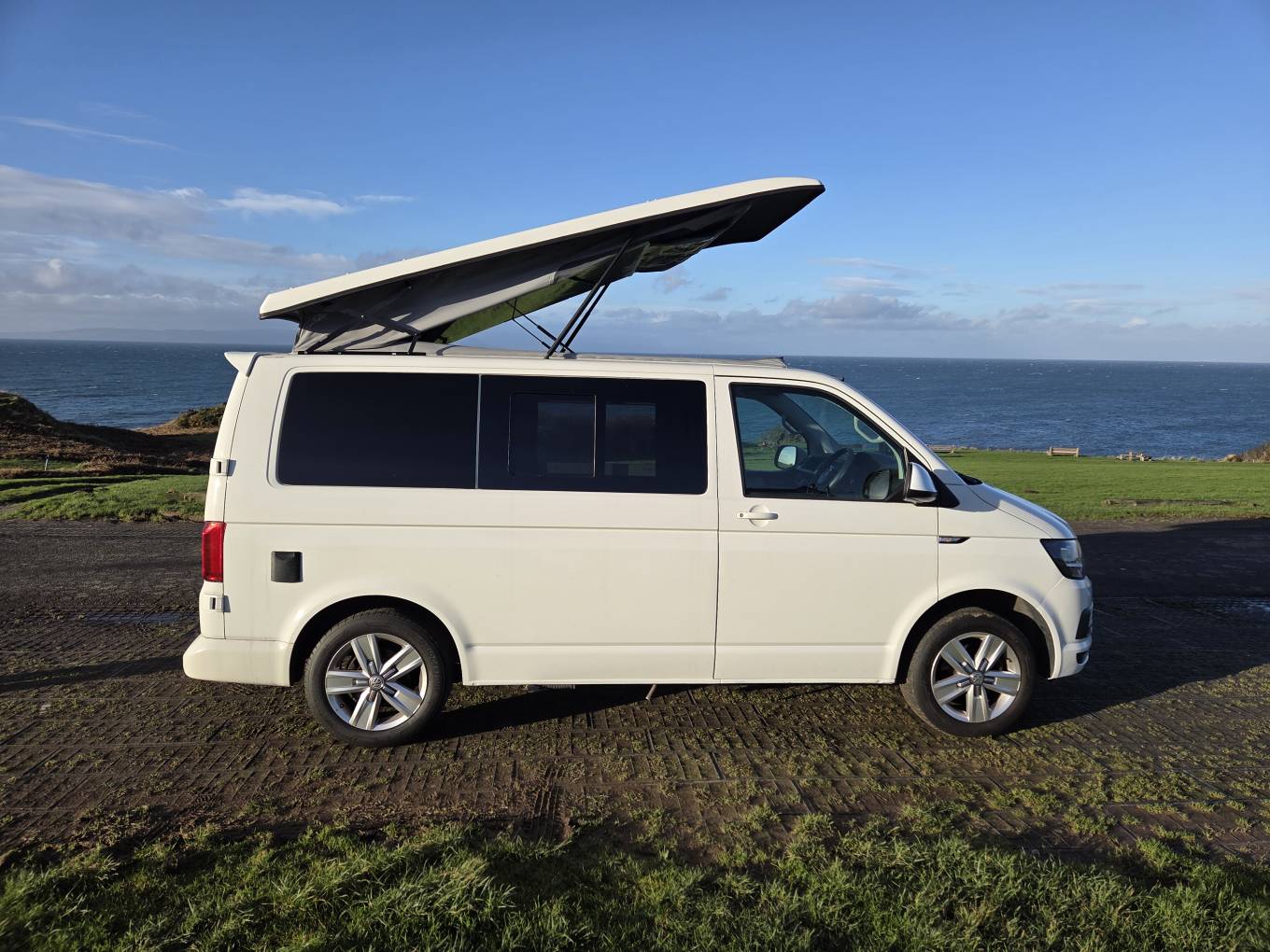 The campervan, in gleaming white with VW badged alloy wheels, is a real head turner.