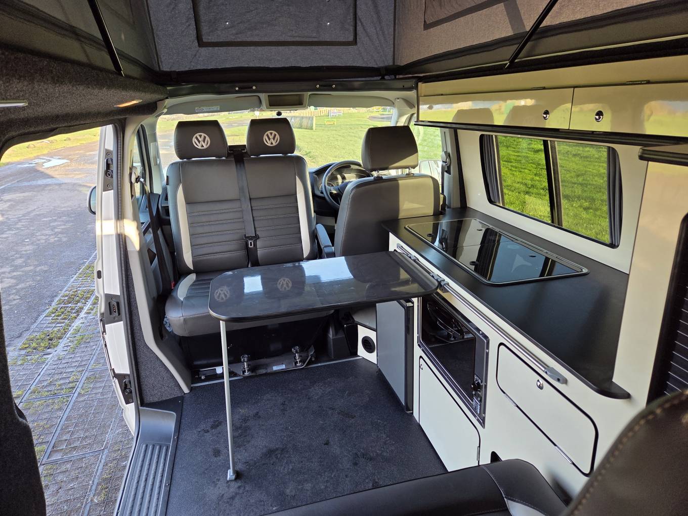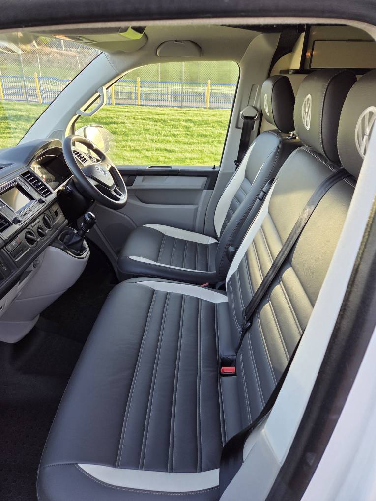Cab: VW logo Driver and Twin passenger swivel leather seats, DAB Radio, touchscreen, Bluetooth, USB port, power steering & cruise control. Under seat storage, privacy window blinds.