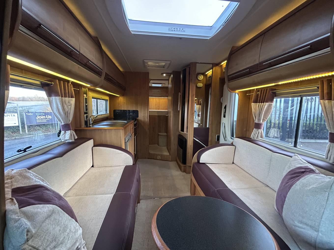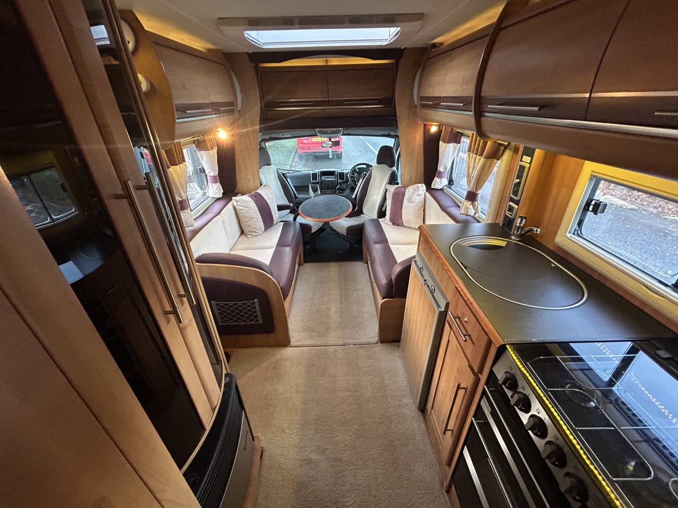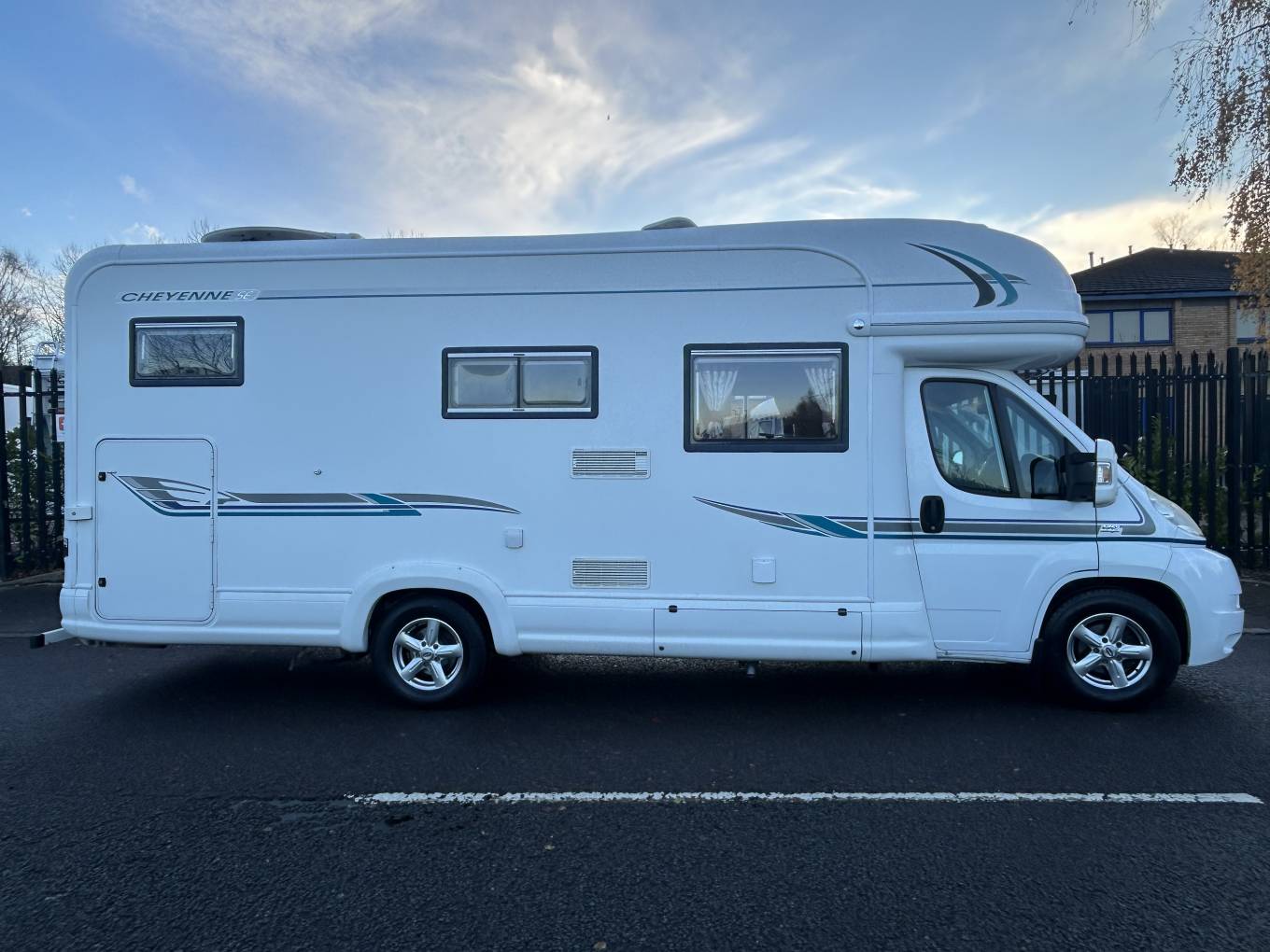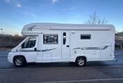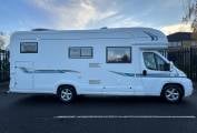 There is great specification on the Cheyenne too, including awning, omni vent reversible roof fan, external bbq point, tow bar, solar panel, satellite TV, drop down TV in the cab. the cab offers six speed gearbox, cruise control, cab air conditioning and integrated night blinds. Plated at 4005KG, so drivers will require category C1 on their licence. This motorhome can be viewed by appointment only in Mansfield.