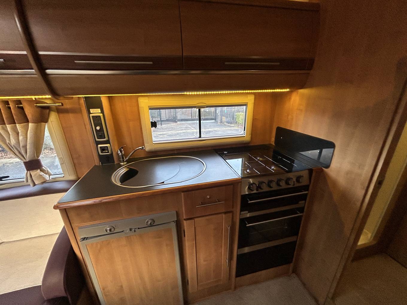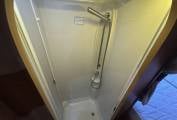 With the cab seats swivelled, there is seating for up to six, and the dinette makes an occasional bed too. In the centre section is a well equipped kitchen with fridge, gas hob, oven and grill, plus a range of storage cupboards. Immediately behind the kitchen, the rear bedroom and washroom area, which includes a separate shower cubicle, can be closed off for privacy. To the rear is the double transverse bed with comfortable mattresses, over the rear garage.