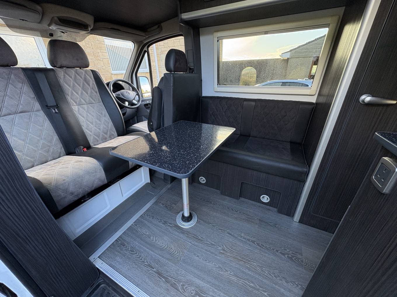 This Mercedes is loaded with extras which include but not limited to, Truma Heating and Hot Water that works off Gas or Electric Hook Up, 110AMP Leisure Battery, 400w of Solar Panel with Victron Charge Controller , 240 Hook Up Point, USB and 240 Sockets, Microwave, 12v Fridge, Oven/Grill Combi, Storage Lockers, Removable Centre Table, Pioneer DAB Radio with Apple Car Play and Android ready, Tow Bar, On Board 90L Fresh Water Tank, LED Downlighting + Colour Changing Mood Lighting, LED Awning Light, Operation Manuals, Electric Windows, Habitation Windows have Fly and Blackout Blinds, and more.