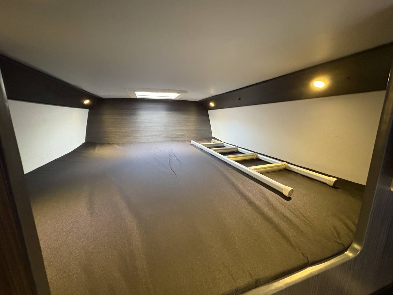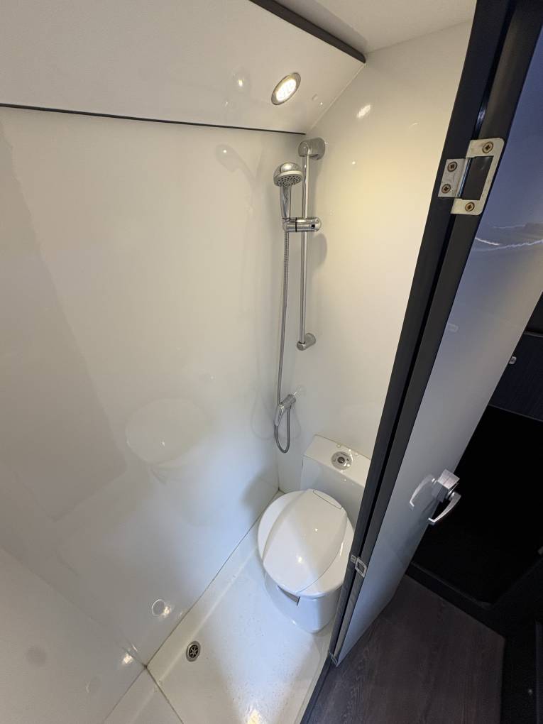 Behind this area, you will find the bathroom, with a shower and toilet. You will also find the well equipped kitchen area, which includes a 3 gas ring hob, oven and grill combi, microwave, fridge with freezer space and sink with hot and cold water and more storage space. At the rear of the van is the Large Double Bed. One of the best features of this race van will no doubt be the large garage which can be accessed from externally or inside the van, which is a nice little touch and will ensure nothing is left behind on your next adventure.