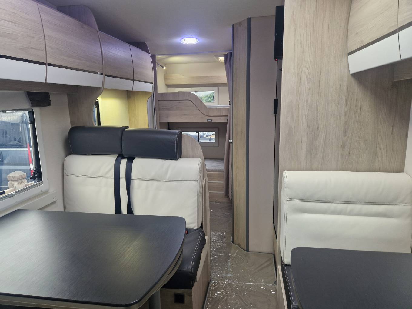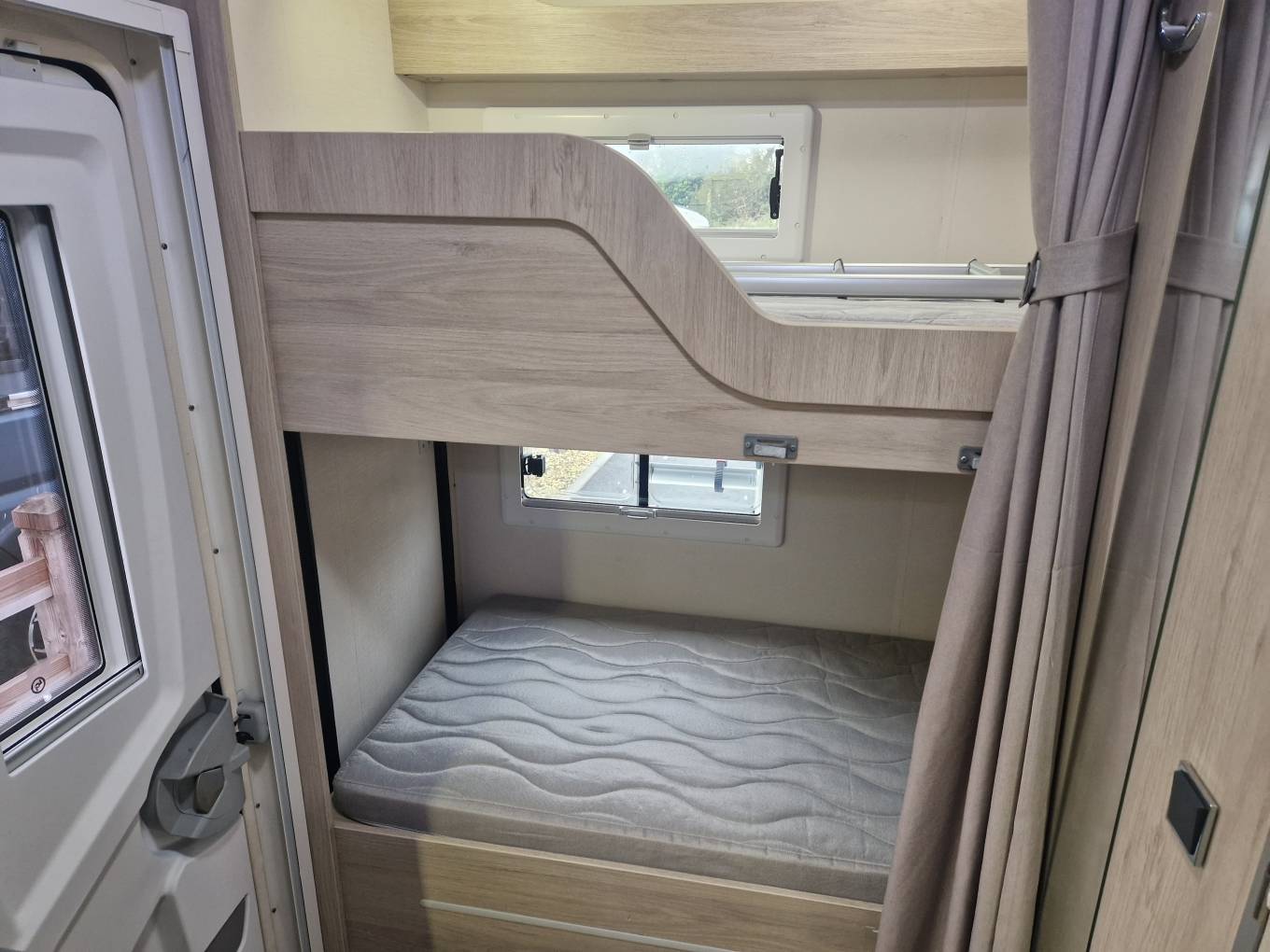 2020 Chausson C656 6/7 berth motorhome for sale. With its versatile sleeping arrangements and ample storage, the C656 is the ultimate family motorhome. Whether it’s weekend getaways or extended holidays, this model delivers freedom, comfort, and practicality in one stylish package. This layout features twin rear bunks that fold away to provide a garage area, kitchen area with oven and large fridge freezer, washroom with separate shower, twin dinette area and a large over cab bed. Other features include awning, alloys, bike rack, reverse camera, external gas point, towbar, solar panel, alarm, on board water tanks and much more. Sale includes full years warranty. Recent mechanical service and habitation service completed. Finance and part exchange available. Please call for further details..