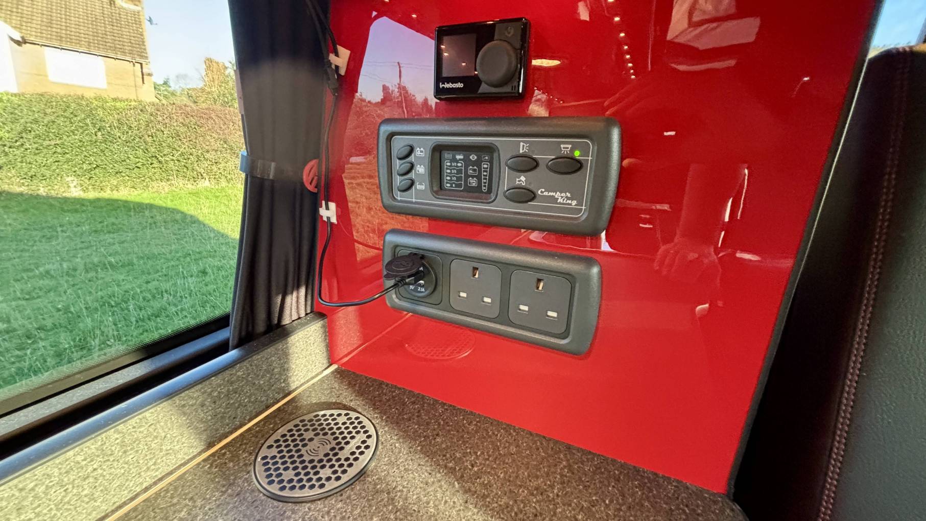 For off-grid adventures, this van is properly equipped: a 100W solar panel, leisure battery, Webasto diesel heater, LED touch lights, USB points, and a wireless charging pad keep you powered and comfortable wherever you go. A wind-out awning extends your outdoor living space with ease.