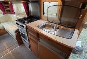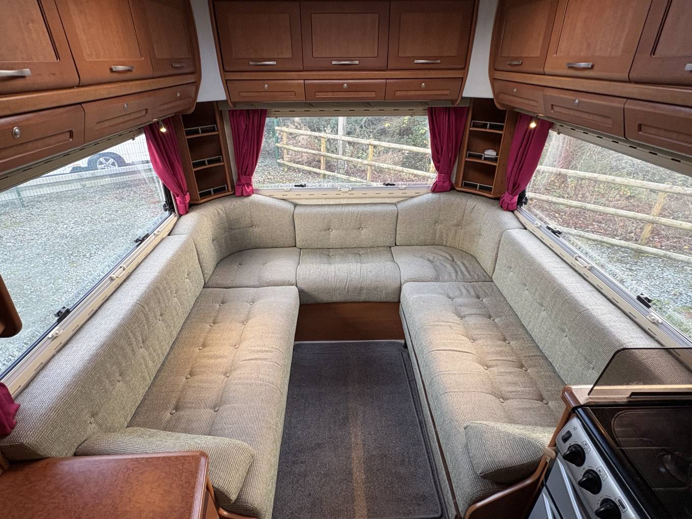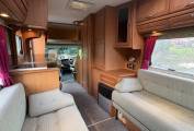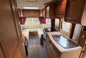The popular rear U-shaped lounge offers superb relaxation space and converts into a large double bed. A big skylight fills the lounge with natural light. The overcab double bed provides additional sleeping capacity when needed. The cab includes twin captain seats, electric windows, Sat Nav & Reversing Camera, making driving and parking a breeze.