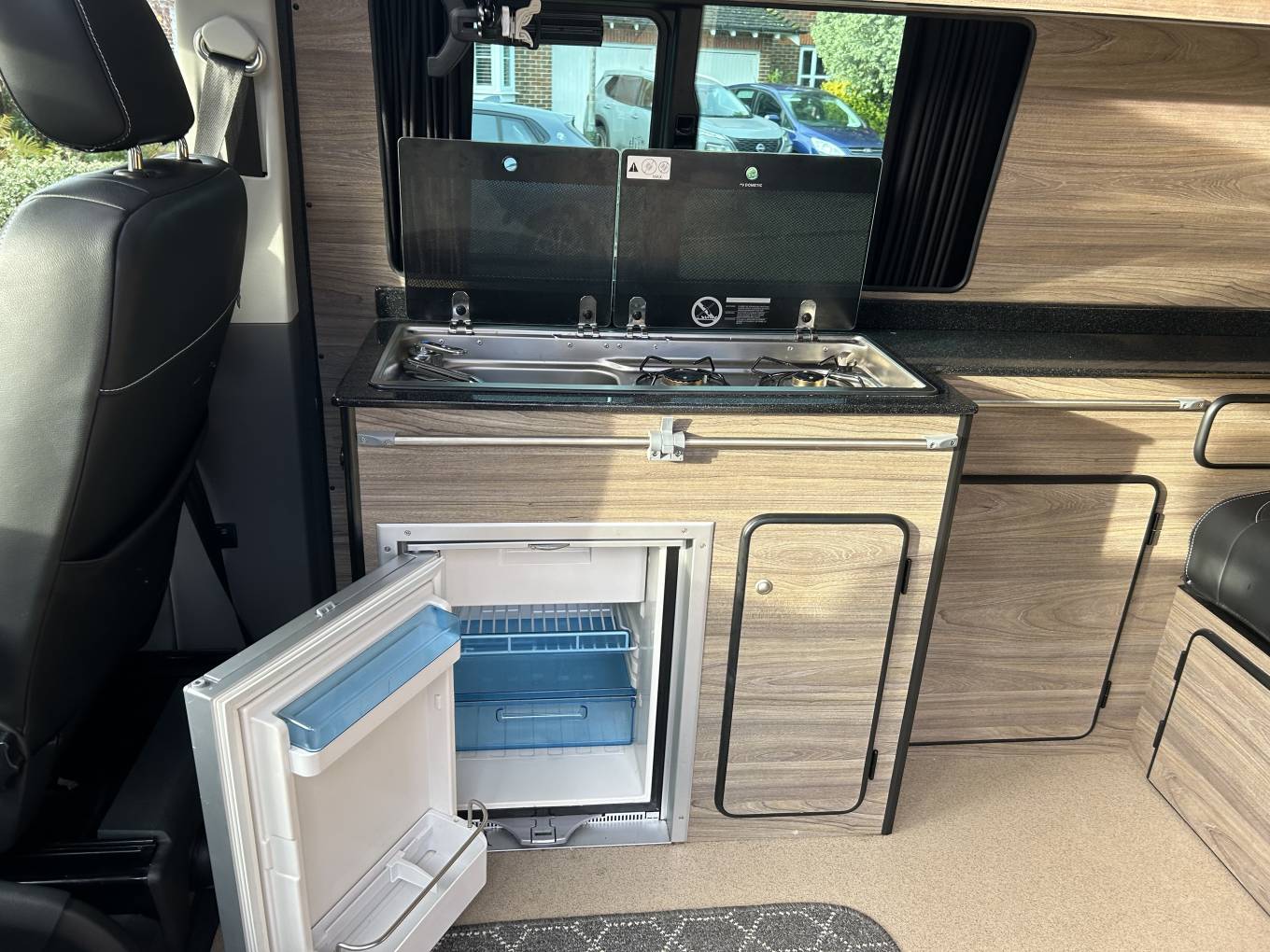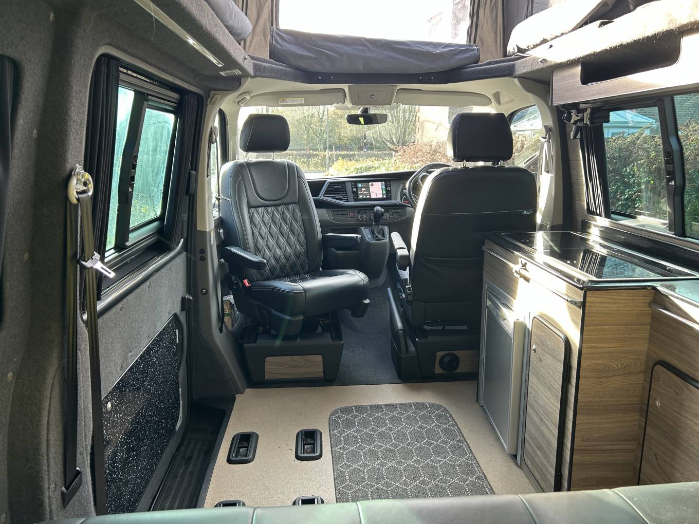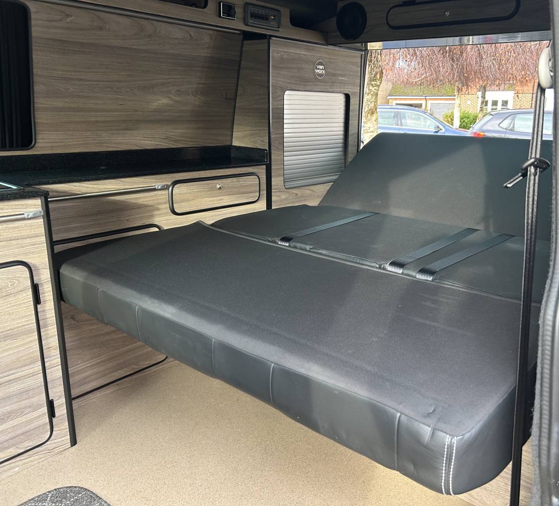 The Vanworx conversions are exceptionally high quality and this one is no exception. As mentioned this is built on a long wheel base Volkswagen T32 and the camper has a powerful 2l engine with automatic gearbox and 150 BHP. It is an absolute joy to drive with cruise control, multimedia centre including Sat Nav and even has heated seats. The conversion was bespoke built specifically to give as much internal space as possible and therefore dispensed with unnecessary clutter to provide a large RIB bed, additional removable travel seat (with Isofix) and lots of extra space. It comes with a 12v Fridge, cold water sink and 2 gas burner hob and also has a Webasto diesel heater that will keep you warm as toast on even the coldest of nights. The fact this camper is 5.5m means that it has a genuine double bed in the Pop Top roof and an extremely comfortable RIB bed, with ratchet head panel, measuring 186cm x 130cm wide.This campervan also has a wind out awning and tow bar and comes with Solar Panel and Leisure Battery so ideal for festivals or sporting events. In summary this is an absolutely fantastic camper that is easy to drive, has loads of space inside - so offers so much more that the standard campers. This camper is packed with extras so please contact Michael Register for further details