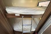 - Rear bunks with the bottom bunk hinged to provide access to the large garage storage space, which can also be accessed from exterior lockers