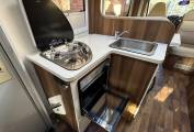 - Washroom with hand wash basin, integrated shower tray and Thetford cassette toilet