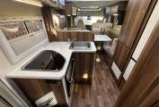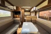The motorhome comfortably sleeps 6 with a large electric drop-down bed, transverse bunk beds and the front dinette converts to the second double bed.
