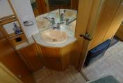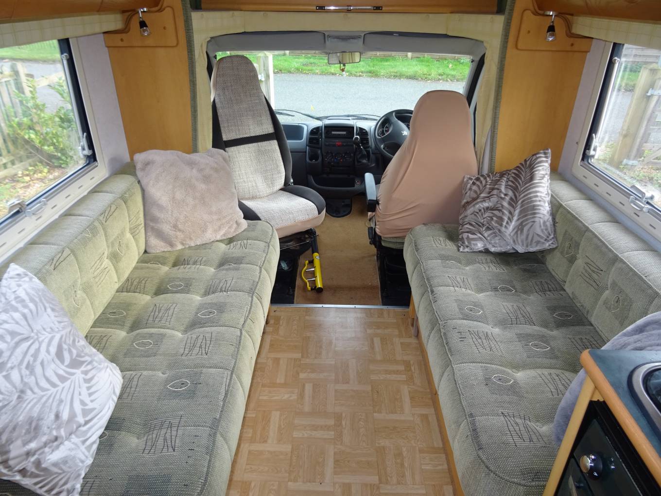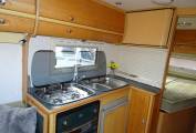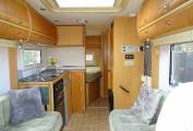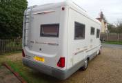 As you enter moving to the front cab area you have one seat that swivels round and above the cab you have a large double bed with ladder that can slide back when not in use for more headspace when driving and moving about. Moving forward you have the dining area with a free standing table with twin facing sofas that convert in to a large double bed. Moving to the centre this excellent kitchen area has all you need sink, full oven, grill, 4 ring gas hob and plenty of storage lockers. Moving to the back you have a rear French bed with storage space underneath this area includes the washroom area with a separate toilet and shower area. other features electric heating and hot water, gas fire, awning, TV, roof rack, will come with a new large chest fridge please see pictures, outdoor storage locker. Includes gas bottle. Owned this motorhome for nearly 3 years and it is a very spacious motorhome and a great layout.